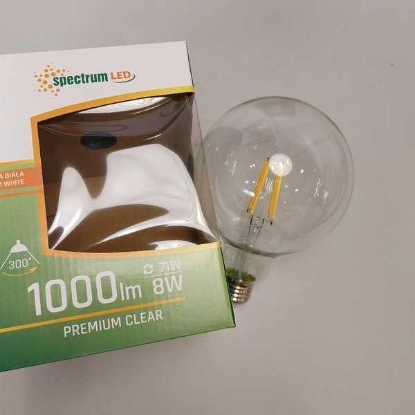 Mocna żarówka Filament LED o mocy 8W i ciepłej barwie.