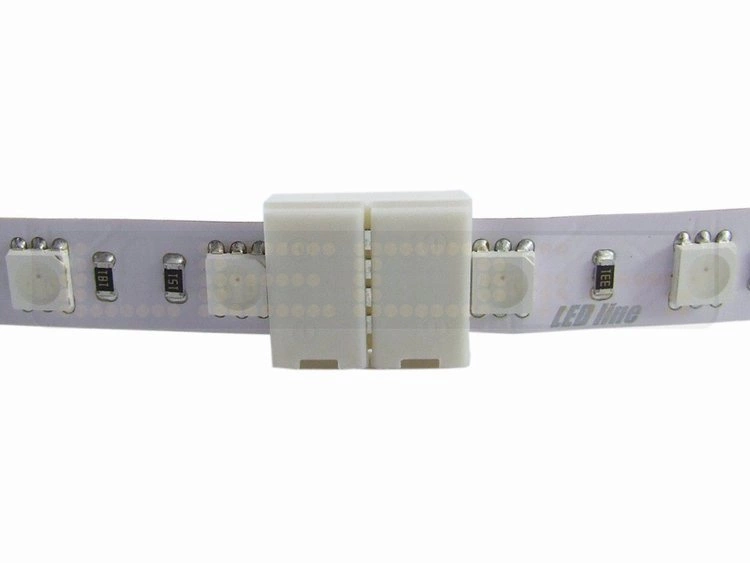 Szybkozłączka do łączenia taśmy LED RGB ze źródłami zasilania. Złączka została zaprojektowana tak, aby w prosty i szybki sposób, bez zbędnego lutowania połączyć ze sobą dwie taśmy LED RGB.