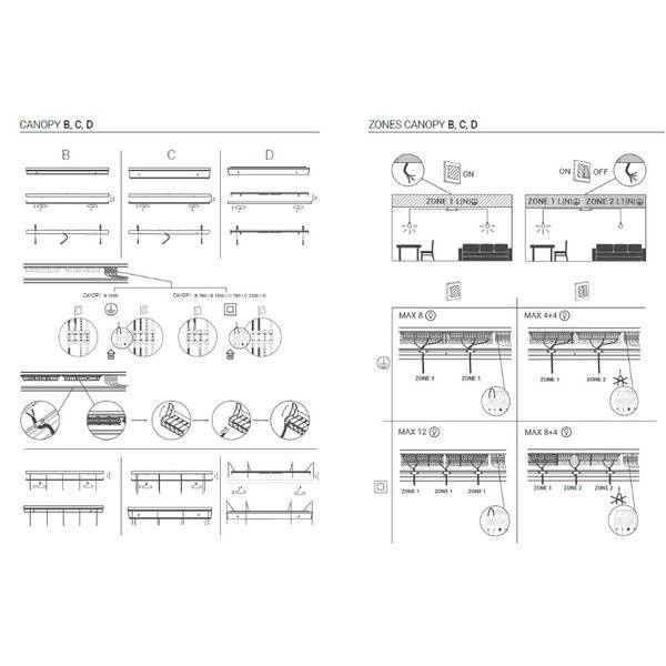 Puszka montażowa systemu oświetleniowego CAMELEON CANOPY B 780 BLACK" umożliwia podłączenie do 12 lamp wiszących.