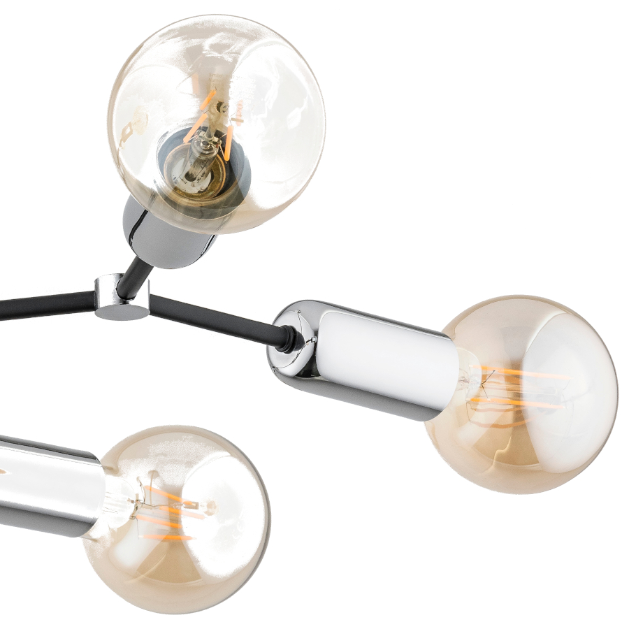 Lampa sufitowa RIBBA to wyjątkowo elegancka dekoracja dla twojego domu, wykonana z stopu metalu w kolorze czarnym z dodatkowymi elementami w kolorze chromu.