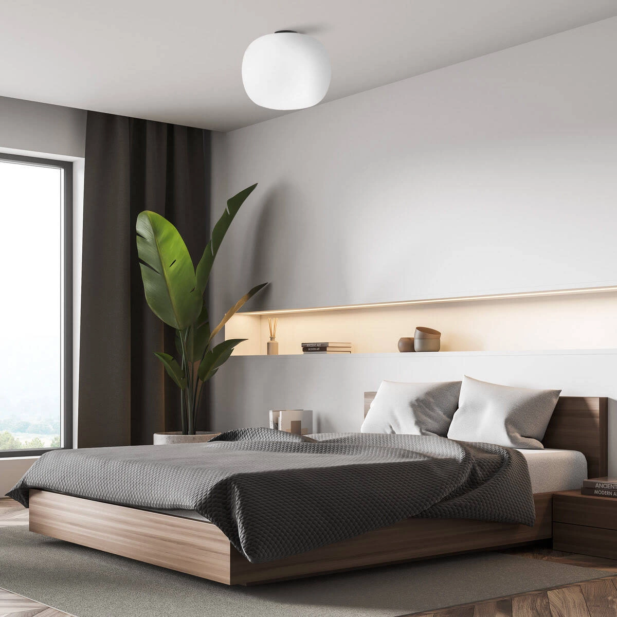 JUKON LP-052/1C to stylowa lampa sufitowa z jednym źródłem światła. Korpus lampy wykonano z wysokiej jakości metalu w kolorze czarnym. Klosz jest z białego szkła. Oprawa będzie idealnym wyborem do wnętrz urządzonych w stylu klasycznym oraz nowoczesnym. Doskonale będzie się prezentować w: salonie, jadalni, sypialni, pokoju młodzieżowym, gabinecie, lokalu, przedpokoju, korytarzu, kuchni. Wysokość lampy to: 24,5 cm, średnica 30 cm. Źródłem światła jest żarówka typu E27 o mocy max 60W w ilości 1 szt.