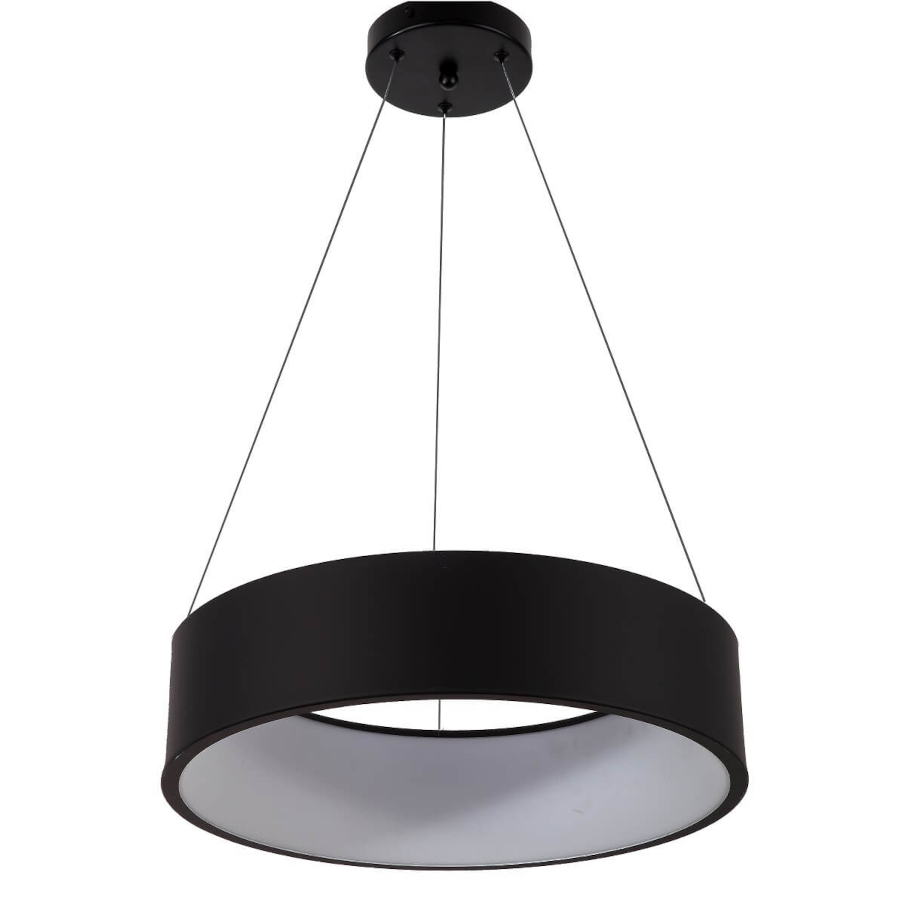 MALAGA LP-622/1P BK to stylowa lampa wisząca z jednym źródłem światła. Wykonana została z wysokiej jakości metalu w kolorze czarnym. Klosz lampy ma kształt pierścienia od zewnątrz jest czarny, a od środka jest pokryty białym akrylem osłaniającym źródła światła. Oprawa będzie idealnym wyborem do wnętrz urządzonych w nowoczesnym stylu. Doskonale będzie się prezentować w: salonie, jadalni, sypialni, pokoju młodzieżowym, gabinecie, lokalu, kuchni. Wysokość lampy to: 120 cm, średnica 45 cm. Źródłem światła jest zintegrowany LED o mocy 24W, ciepłej barwie 3000K i jasności 1700lm