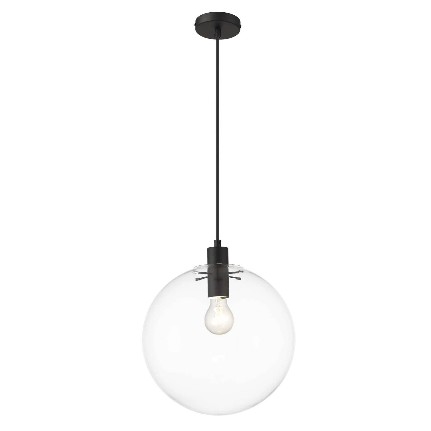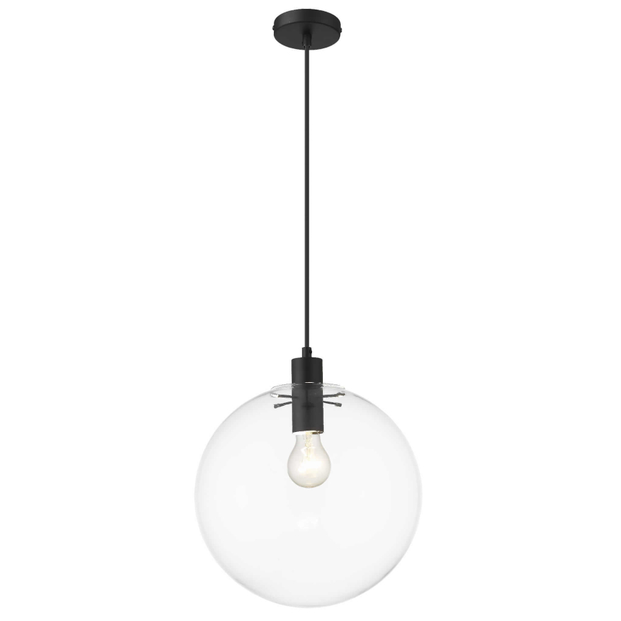 Lampa wisząca PUERTO, śr. 30cm, czarna z transparentnym kloszem, 1x50W E27