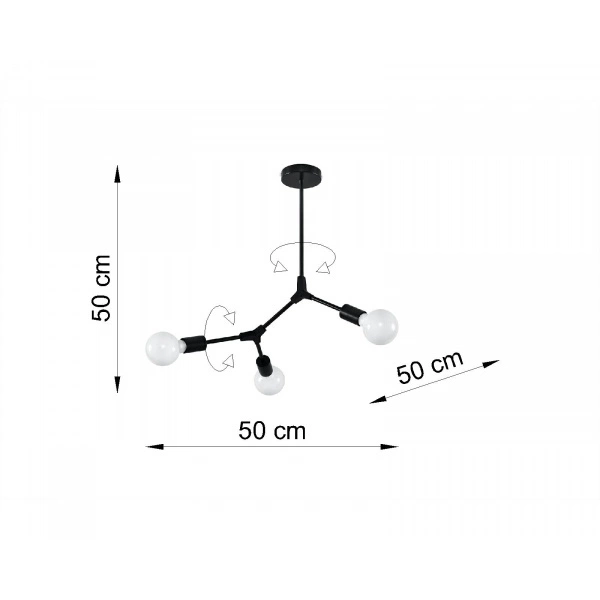 PLATO 3 SL.0708 to nowoczesna lampa sufitowa z trzema źródłami światła. Wykonana została z wysokiej jakości stali w kolorze czarnym. Żyrandol posiada możliwość regulacji położenia źródeł światła. Będzie idealnym wyborem do wnętrz urządzonych w stylu industrialnym oraz loftowym. Doskonale będzie się prezentować w: salonie, jadalni, sypialni, pokoju młodzieżowym, gabinecie, biurze, lokalu, korytarzu. Wysokość lampy to: 50 cm, szerokość 50 cm, głębokość 50 cm. Źródłem światła jest żarówka typu E27 o mocy max 60W w ilości 3 szt.