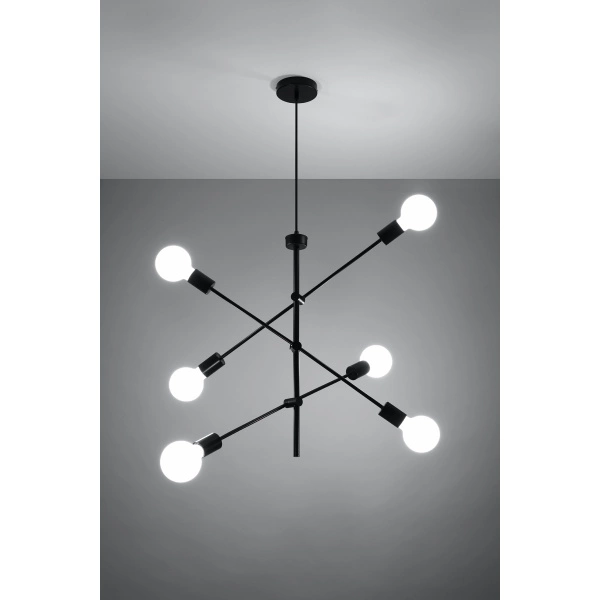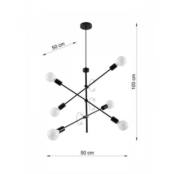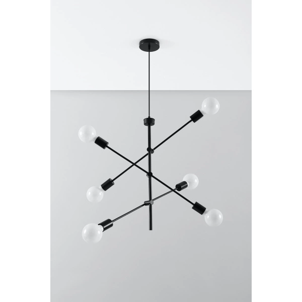 CONCEPT 6 SL.0713 to nowoczesna lampa wisząca z sześcioma źródłami światła. Wykonana została z wysokiej jakości stali w kolorze czarnym. Lampa posiada regulację położenia źródeł światła. Będzie idealnym wyborem do wnętrz urządzonych w stylu nowoczesnym, industrialnym oraz loftowym. Doskonale będzie się prezentować w: salonie, jadalni, sypialni, pokoju młodzieżowym, lokalu, gabinecie. Dużą zaletą jest możliwość regulacji wysokości. Wysokość maksymalna lampy to: 100 cm, szerokość 50 cm, głębokość 50 cm. Źródłem światła jest żarówka typu E27 o mocy max 60W w ilości 6 szt.