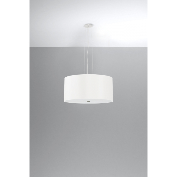 OTTO SL.0743 to nowoczesna lampa wisząca z pięcioma źródłami światła. Oprawa wykonana została z wysokiej jakości szkła, stali oraz tworzywa sztucznego. Lampa posiada biały abażur z tkaniny w kształcie walca zamknięty od dołu szkłem. Będzie idealnym wyborem do wnętrz urządzonych w stylu: nowoczesnym, skandynawskim, industrialnym oraz loftowym. Doskonale będzie się prezentować w: salonie, jadalni, sypialni, pokoju młodzieżowym, gabinecie, biurze, lokalu, kuchni. Dużą zaletą jest możliwość regulacji wysokości. Wysokość maksymalna lampy to: 110 cm, szerokość 50 cm, głębokość 50 cm. Źródłem światła jest żarówka typu E27 o mocy max 60W w ilości 5 szt.