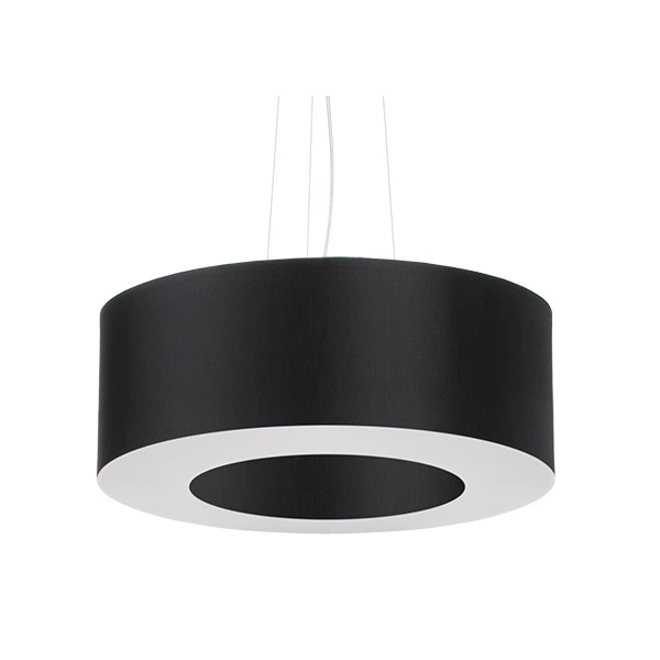 SATURNO SL.0748 to nowoczesna lampa wisząca z pięcioma źródłami światła. Wykonana została z wysokiej jakości tkaniny, stali oraz PVC. Lampa posiada czarny abażur w kształcie koła z pustą przestrzenią w środku. Źródła światła są osłonięte białą membraną, która równomiernie rozprasza światło. Oprawa będzie idealnym wyborem do wnętrz urządzonych w nowoczesnym stylu. Doskonale będzie się prezentować w: salonie, jadalni, sypialni, pokoju młodzieżowym, gabinecie, biurze, lokalu, kuchni. Dużą zaletą jest możliwość regulacji wysokości. Wysokość maksymalna lampy to: 110 cm, szerokość 50 cm, głębokość 50 cm. Źródłem światła jest żarówka typu E27 o mocy max 60W w ilości 5 szt.