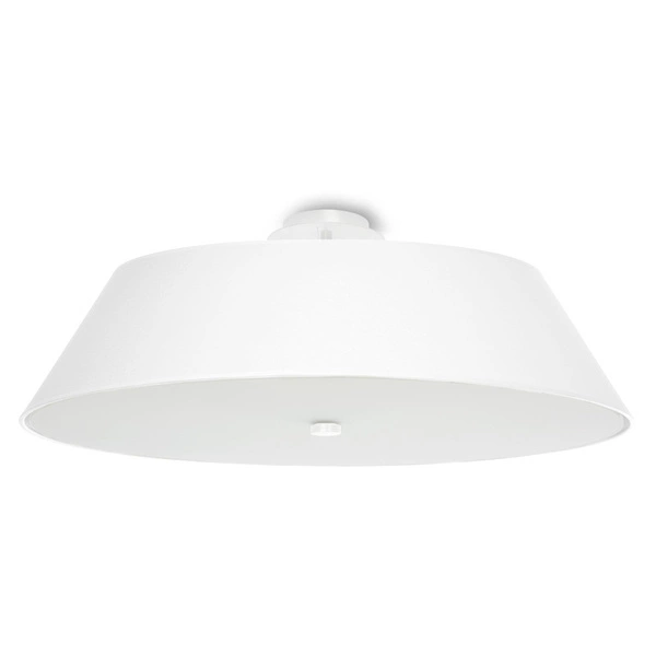 VEGA SL.0767 to nowoczesna lampa sufitowa z pięcioma źródłami światła. Korpus lampy wykonano z wysokiej jakości stali. Abażur jest z białej tkaniny zamknięty od spodu mleczną taflą szkła. Oprawa będzie idealnym wyborem do wnętrz urządzonych w stylu: nowoczesnym, skandynawskim, industrialnym oraz loftowym. Doskonale będzie się prezentować w: salonie, jadalni, sypialni, pokoju młodzieżowym, gabinecie, biurze, lokalu, kuchni. Wysokość lampy to: 25 cm, szerokość 60 cm, długość 60 cm. Źródłem światła jest żarówka typu E27 o mocy max 60W w ilości 5 szt.
