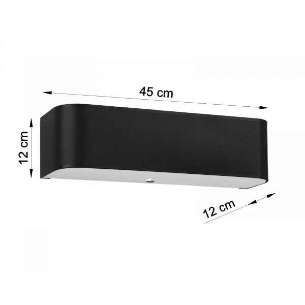 LOKKO SL.0778 to nowoczesna lampa ścienna z dwoma źródłami światła. Wykonana została z wysokiej jakości tkaniny, stali oraz szkła. Lampa posiada czarny abażur zamknięty od spodu szybą, która równomiernie rozprasza światło. Oprawa będzie idealnym wyborem do wnętrz urządzonych w nowoczesnym oraz minimalistycznym stylu. Doskonale będzie się prezentować w: salonie, jadalni, sypialni, pokoju młodzieżowym, gabinecie, biurze, lokalu, korytarzu, przedpokoju. Wysokość lampy to: 12 cm, szerokość 45 cm, głębokość 12 cm. Źródłem światła jest żarówka typu E14 o mocy max 60W w ilości 2 szt.