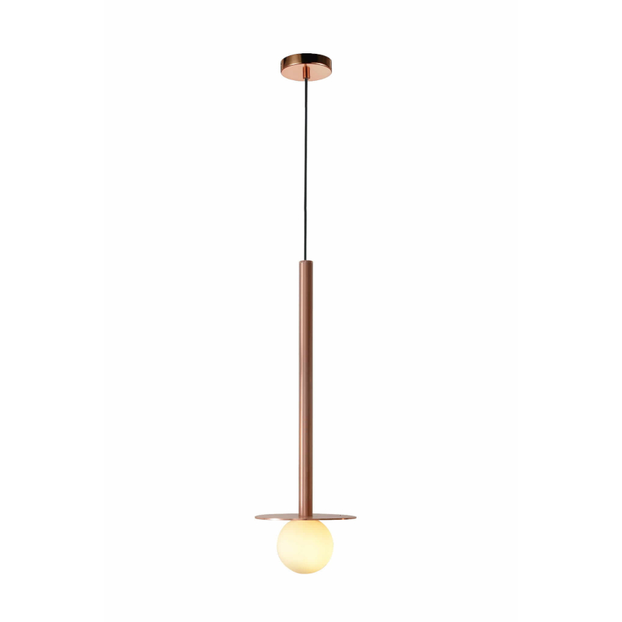 BOLITA LP-048/1PL GR to stylowa lampa wisząca z jednym źródłem światła. Zawiesie lampy wykonano z wysokiej jakości metalu w kolorze różowego złota. Klosz jest z białego szkła. Oprawa będzie idealnym wyborem do wnętrz urządzonych w stylu nowoczesnym oraz modernistycznym. Doskonale będzie się prezentować w każdym pomieszczeniu. Dużym atutem jest możliwość regulacji wysokości. Wysokość maksymalna lampy to 175 cm, średnica 9,5 cm. Źródłem światła jest żarówka typu G9 o mocy max 5W w ilości 1 szt.