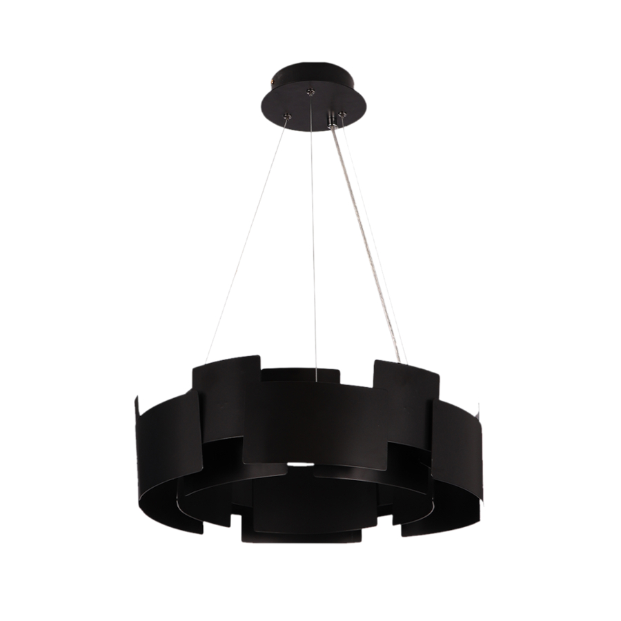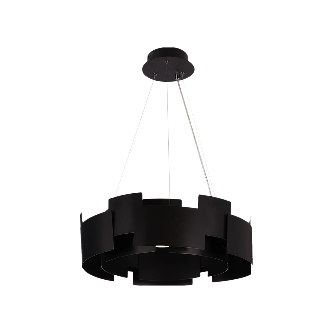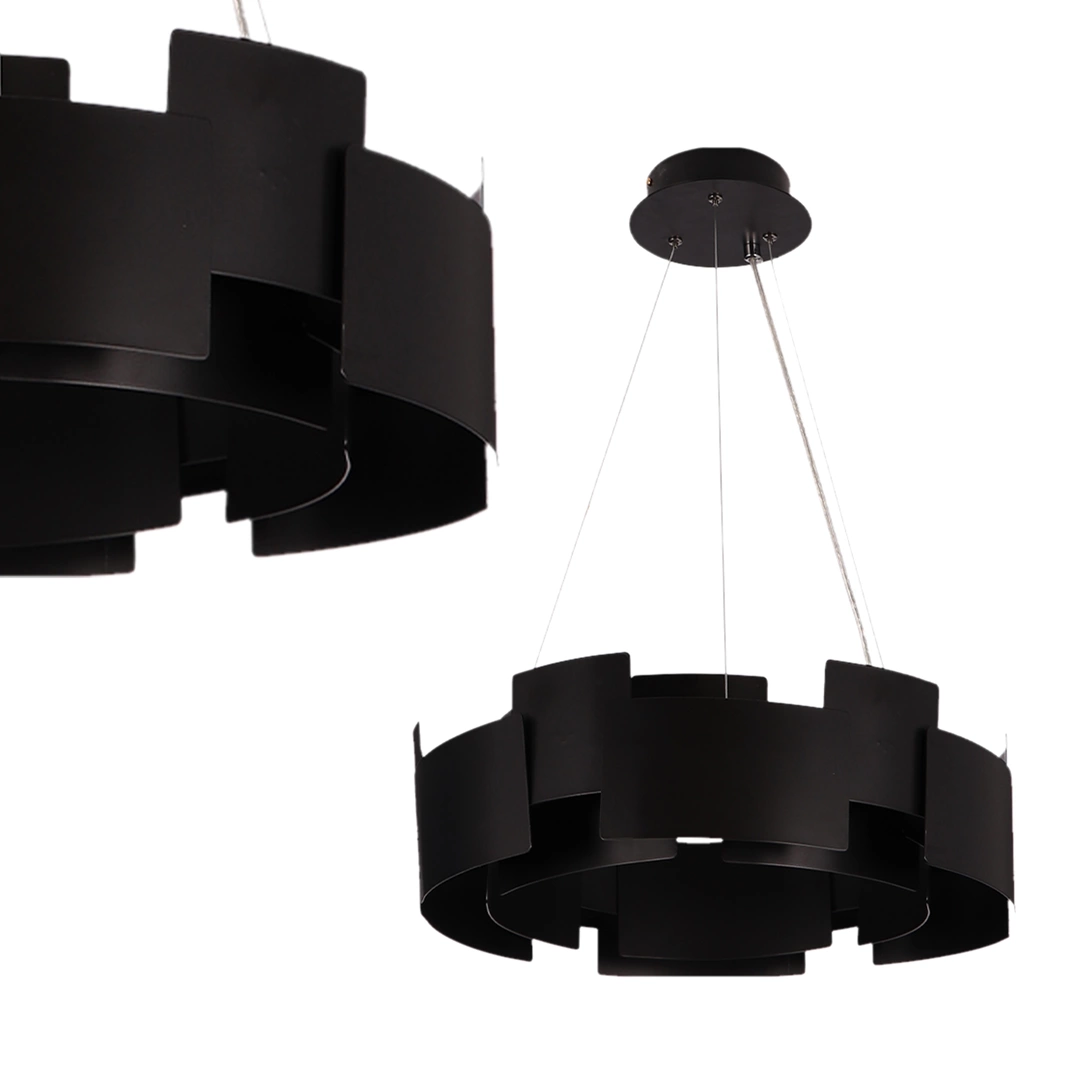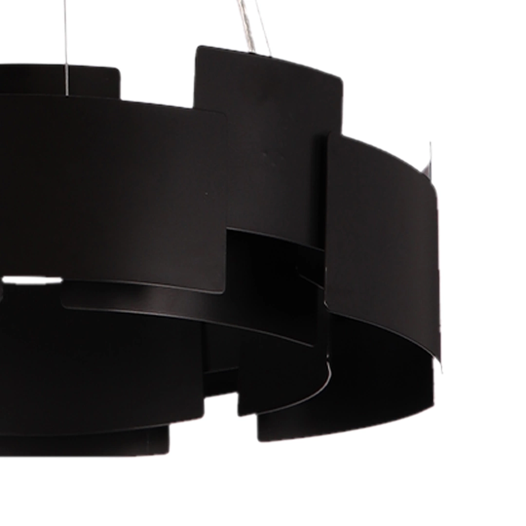 TORINO BLACK ML6141 to lampa wisząca w nowoczesnym stylu. Wykonana została z wysokiej jakości metalu w kolorze czarnym i akrylu. Lampa posiada oryginalny klosz z ułożonych koncentrycznie płytek o różnej szerokości i wysokości. Doskonale będzie się prezentować w: salonie, sypialni, pokoju młodzieżowym, gabinecie, lokalu. Dużą zaletą jest możliwość regulacji wysokości. Wysokość maksymalna lampy to: 100 cm, szerokość 46 cm, głębokość 46 cm. Klosz ma wysokość 12 cm. W lampie zastosowano źródło światła LED o mocy 24W, ciepłej barwie 3000K i jasności 480lm. Źródło światła jest wymienne.