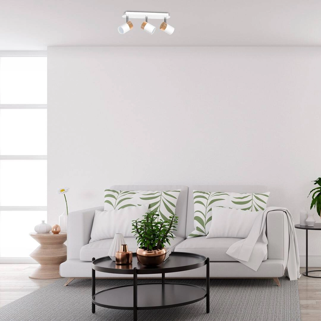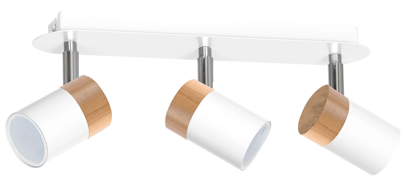 JOKER MLP6300 to stylowa lampa sufitowa z trzema źródłami światła. Wykonana została z wysokiej jakości metalu w kolorze białym z chromowymi i drewnianymi wstawkami. Klosze lampy mają możliwość regulacji kąta padania światła. Oprawa będzie idealnym wyborem do wnętrz urządzonych w stylu klasycznym, nowoczesnym oraz minimalistycznym. Doskonale będzie się prezentować w: salonie, jadalni, sypialni, pokoju młodzieżowym, gabinecie, biurze, lokalu, przedpokoju, korytarzu, kuchni. Wysokość lampy to: 17 cm, szerokość 34 cm, głębokość 8 cm. Źródłem światła jest żarówka typu GU10 o mocy max 8W w ilości 3 szt.