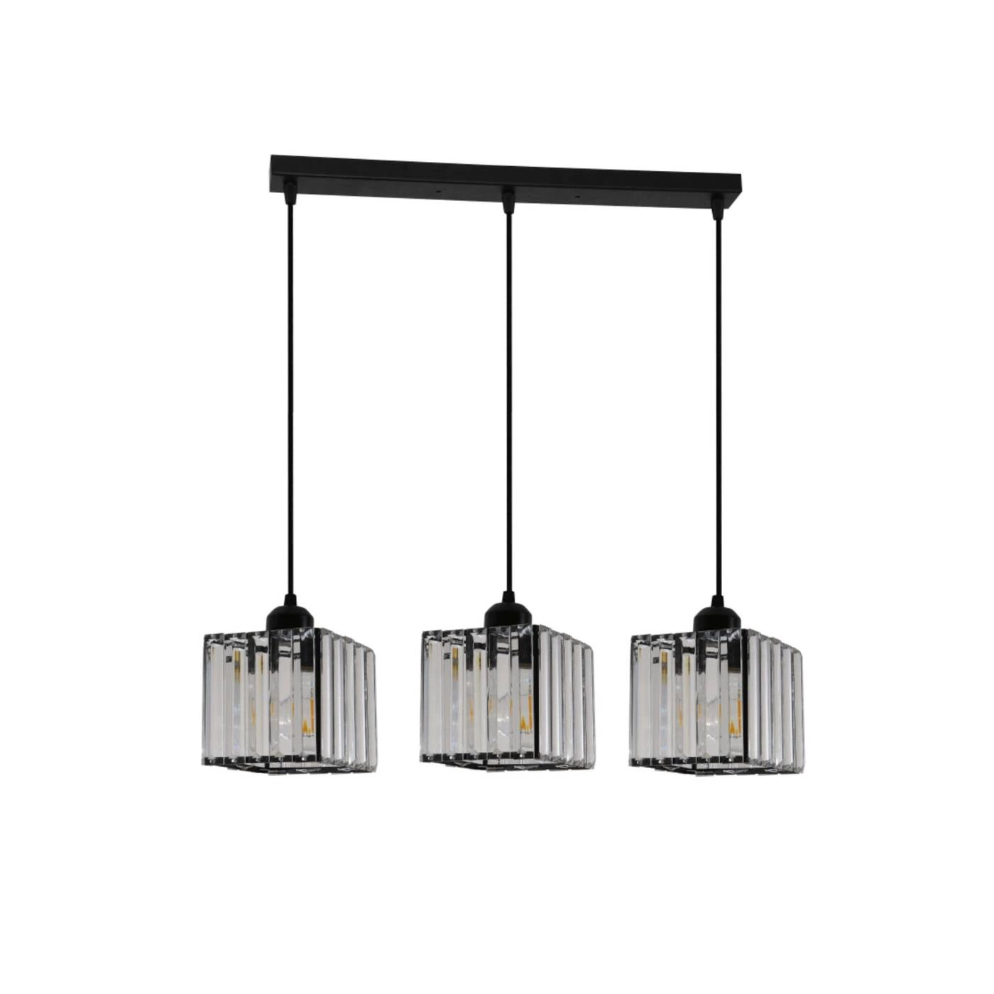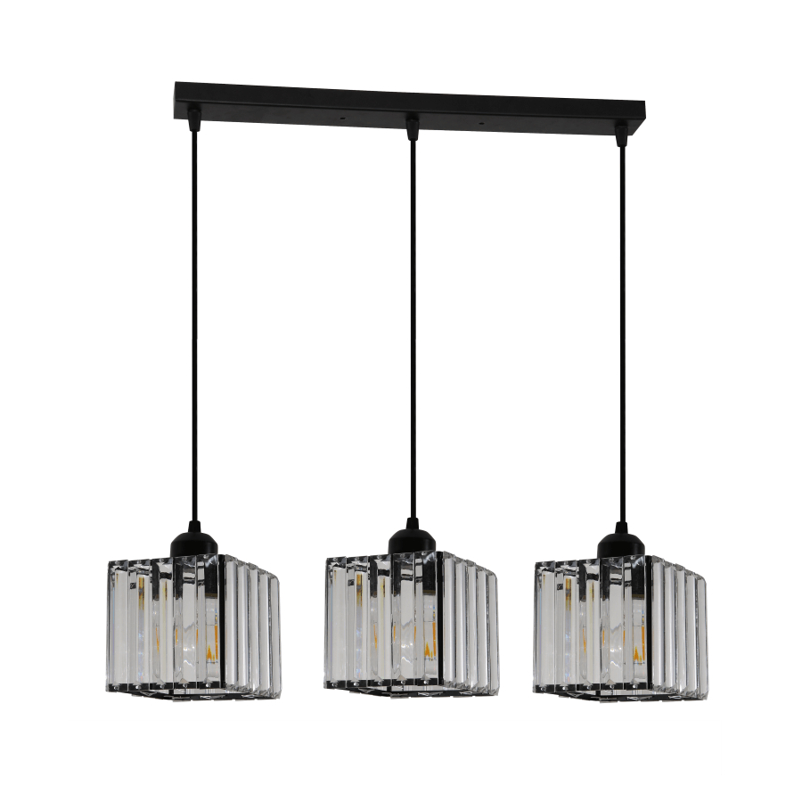 GALACTICO LP-2383/3L to stylowa lampa wisząca z trzema źródłami światła. Zawiesie lampy wykonano z wysokiej jakości metalu w kolorze czarnym. Klosze są z transparentnego szkła o pofalowanej teksturze. Oprawa będzie idealnym wyborem do wnętrz urządzonych w stylu klasycznym oraz nowoczesnym. Doskonale będzie się prezentować w: salonie, jadalni, sypialni, pokoju młodzieżowym, gabinecie, lokalu, kuchni. Dużym atutem jest możliwość regulacji wysokości. Wysokość maksymalna lampy to: 100 cm, szerokość 50 cm, głębokość 15 cm. Źródłem światła jest żarówka typu E27 o mocy max 60W w ilości 3 szt.