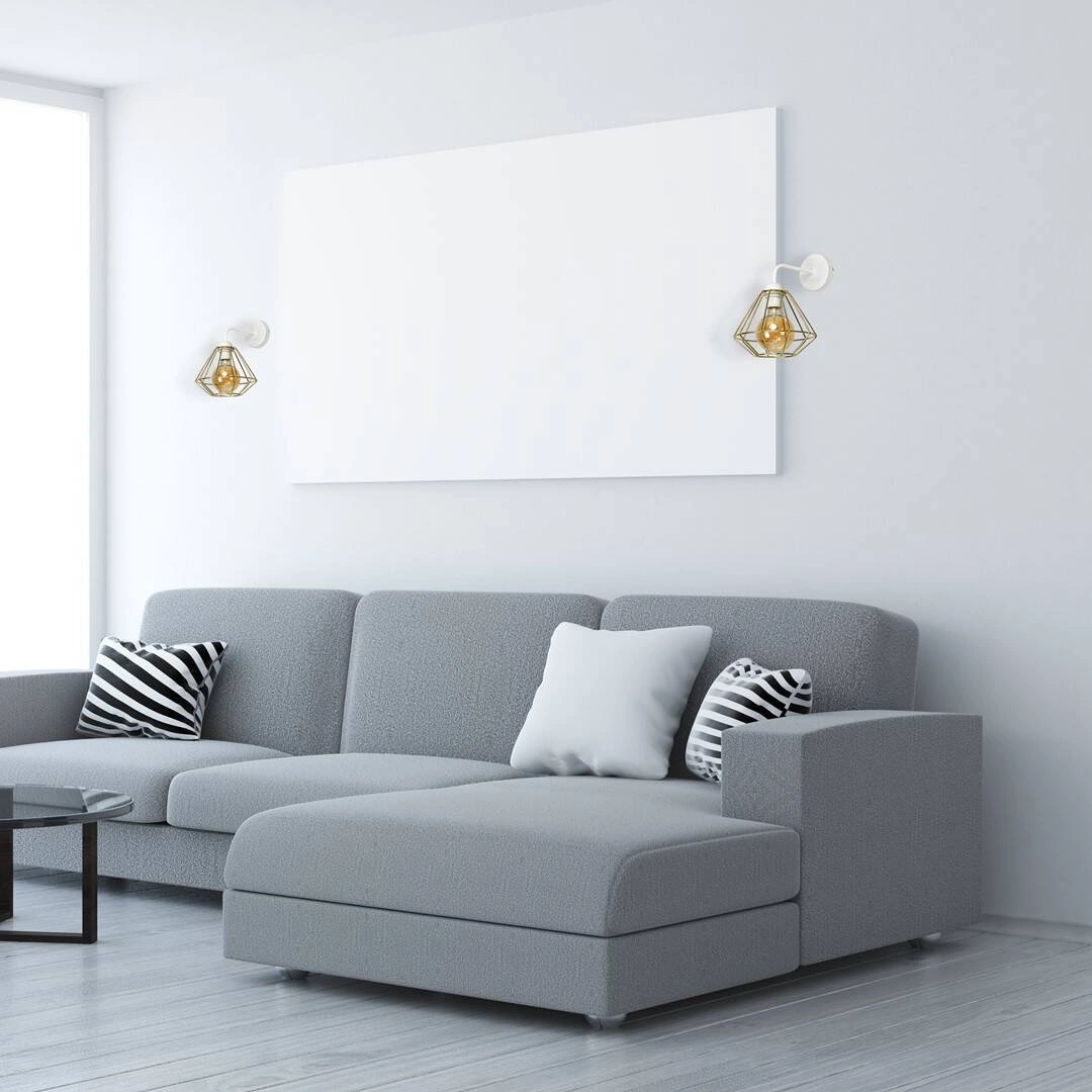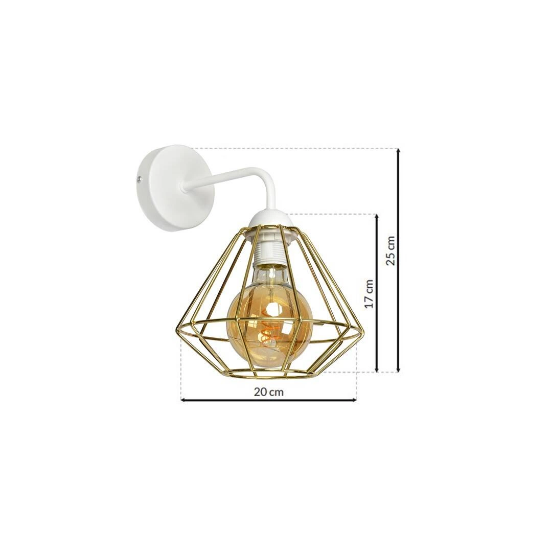 LUPO MLP6265 to lampa ścienna z jednym źródłem światła. Wykonana jest z wysokiej jakości metalu w kolorze białym. Kinkiet posiada złoty klosz z drutu w trapezowej formie. Kształt klosza sprawia, że odsłonięta żarówka jest elementem ozdobnym lampy dlatego warto wybrać jej dekoracyjny model. Lampa będzie idealnym wyborem do nowoczesnych, industrialnych oraz loftowych wnętrz. Doskonale wpasuje się do: jadalni, salonu, sypialni, pokoju młodzieżowego, gabinetu, lokalu, korytarza. Kinkiet może stanowić uzupełnienie lamp wiszących tej serii jak i być oddzielnym elementem wystroju wnętrza. Wysokość lampy to: 25 cm, szerokość 20 cm, głębokość 25 cm. Klosz ma wysokość 17 cm i średnicę 20 cm. Źródłem światła jest żarówka typu E27 o mocy max 60W w ilości 1 szt.