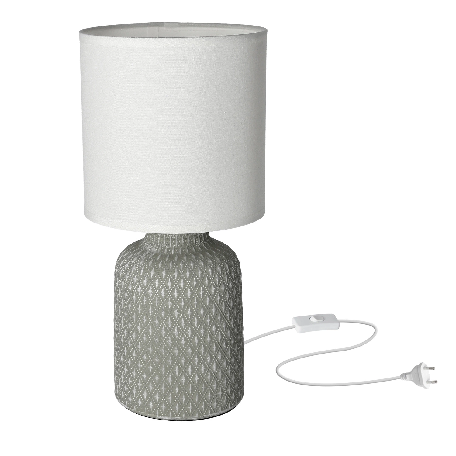 • Lampa gabinetowa/stołowa/nocna INER 41-79886 ceramiczna szara/abażur biały 1x40W E14
