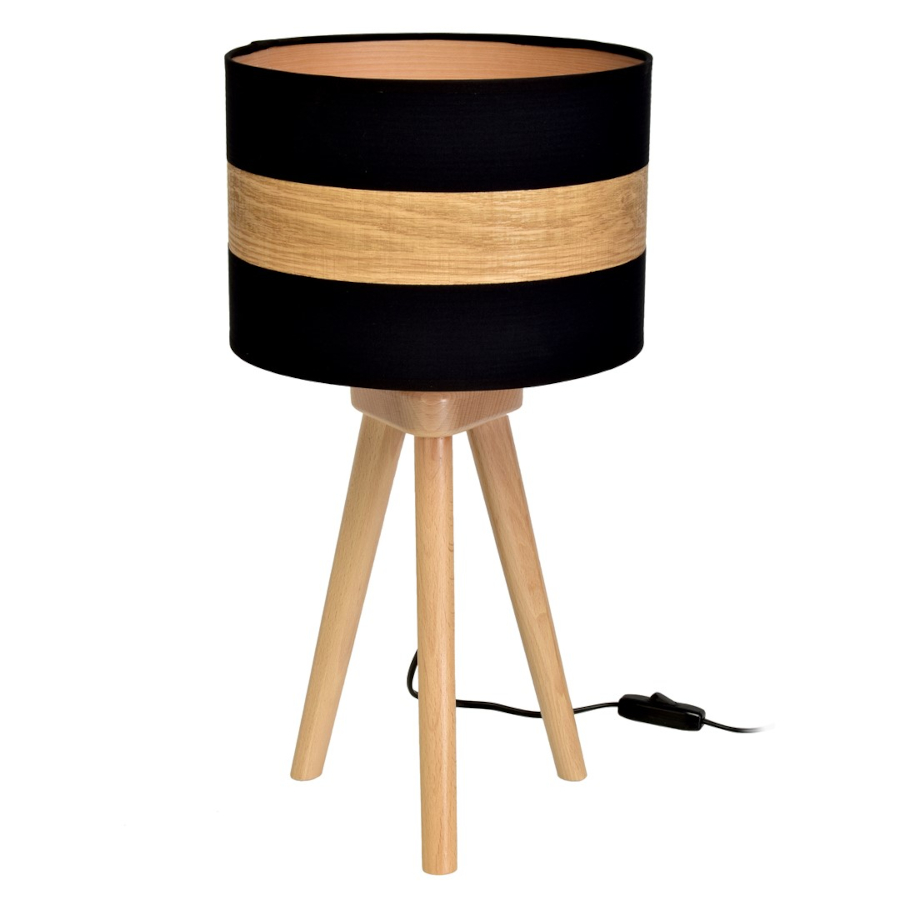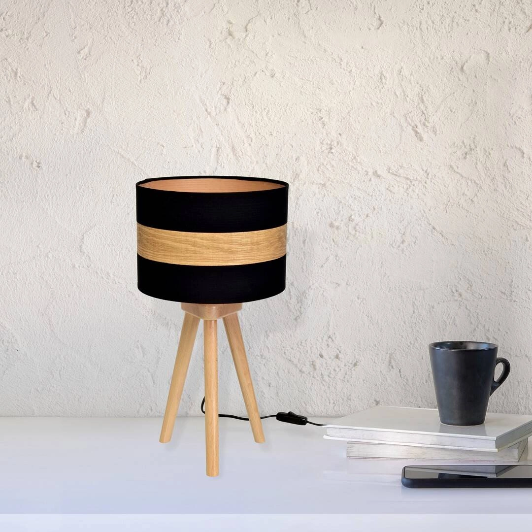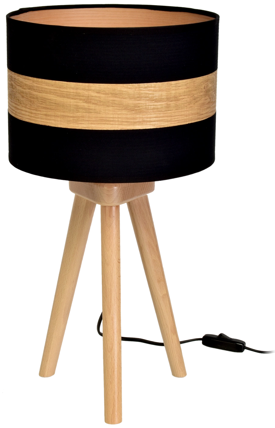 TERRA MLP6292 to nowoczesna lampka stołowa z jednym źródłem światła. Wykonana została z wysokiej jakości metalu, tkaniny oraz drewna. Elementem wyróżniającym lampy jest czarny abażur w kształcie walca wykonany z tkaniny ze wstawką w kolorze naturalnego drewna. Abażur jest osadzony na trzech drewnianych nogach. Lampka będzie idealnym wyborem do wnętrz urządzonych w stylu: klasycznym, nowoczesnym oraz skandynawskim. Doskonale wkomponuje się do: salonu, sypialni, jadalni, pokoju młodzieżowego, gabinetu, lokalu. Może stanowić uzupełnienie do pozostałych lamp tej serii jak i być oddzielnym elementem wystroju wnętrza. Wysokość lampki to: 45 cm, szerokość 25 cm, głębokość 25 cm. Klosz ma wysokość 17 cm. Źródłem światła jest żarówka typu E27 o mocy max 60W w ilości 1 szt.