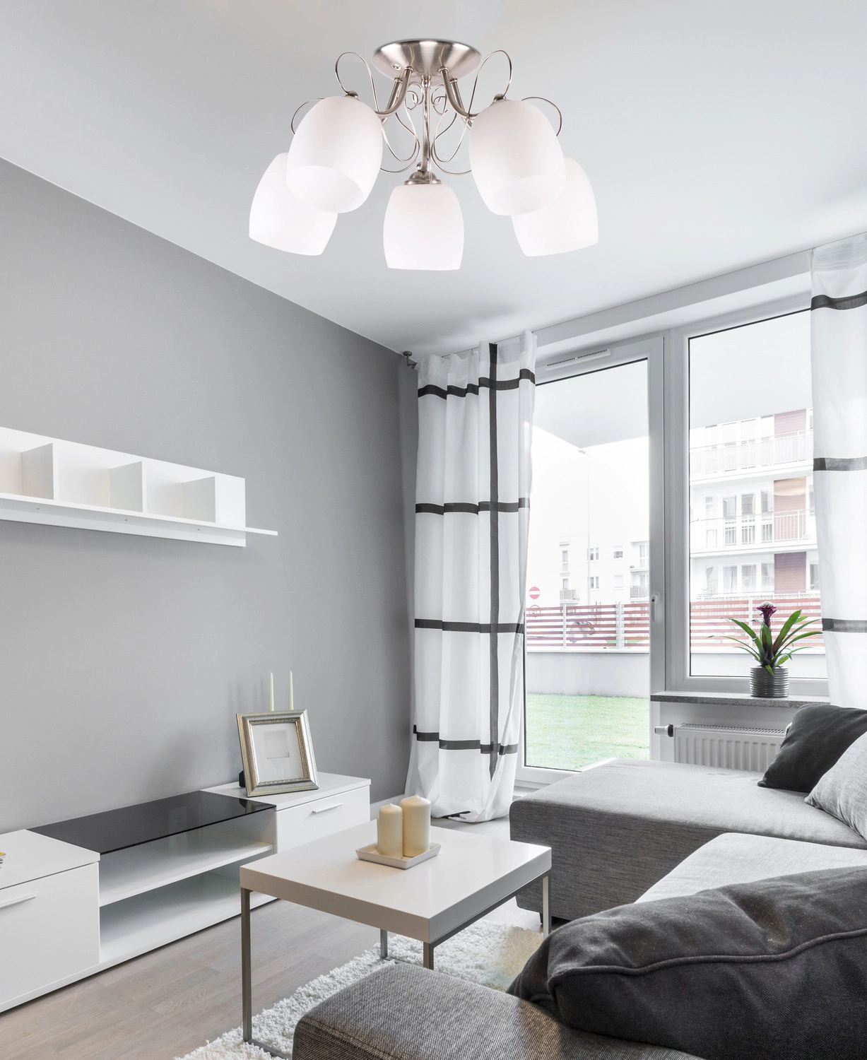AMBA 35-79251 to lampa sufitowa z pięcioma źródłami światła. Korpus lampy wykonano z wysokiej jakości stali w kolorze chromowym. Klosze są z białego szkła. Żyrandol będzie idealnym wyborem do wnętrz urządzonych w klasycznym stylu. Doskonale będzie się prezentować w: salonie, sypialni, jadalni, pokoju młodzieżowym, gabinecie, biurze, lokalu, kuchni, przedpokoju. Wysokość lampy to: 28 cm, szerokość 56 cm, głębokość 56 cm. Źródłem światła jest żarówka typu E27 o mocy max 40W w ilości 5 szt.