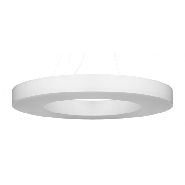 SATURNO SLIM SL.0797 to nowoczesna lampa wisząca z ośmioma źródłami światła. Wykonana została z wysokiej jakości tkaniny, stali oraz PVC. Lampa posiada biały abażur w kształcie koła z pustą przestrzenią w środku. Źródła światła są osłonięte białą membraną, która równomiernie rozprasza światło. Oprawa będzie idealnym wyborem do wnętrz urządzonych w nowoczesnym stylu. Doskonale będzie się prezentować w: salonie, jadalni, sypialni, pokoju młodzieżowym, gabinecie, biurze, lokalu, kuchni. Dużą zaletą jest możliwość regulacji wysokości. Wysokość maksymalna lampy to: 110 cm, szerokość 90 cm, głębokość 90 cm. Źródłem światła jest żarówka typu E27 o mocy max 60W w ilości 8 szt.