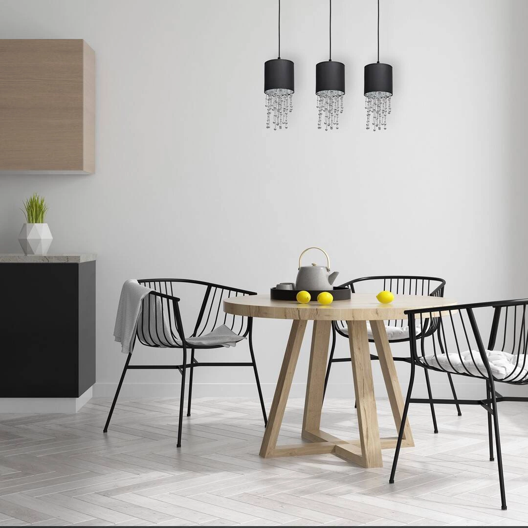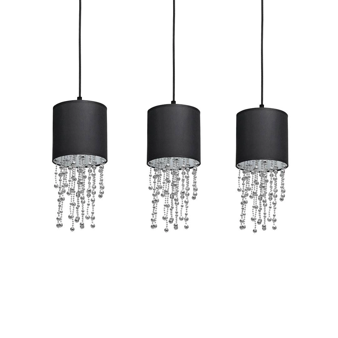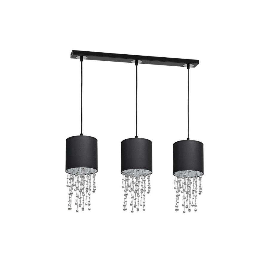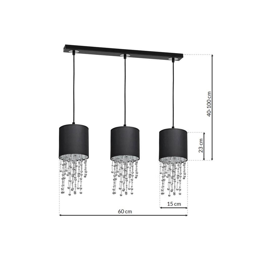 ALMERIA MLP64300 to nowoczesna lampa wisząca z trzema źródłami światła. Lampa posiada trzy klosze w kształcie walca wykonane z tkaniny w kolorze czarnym na zewnątrz, od środka w kolorze chromu. Elementem wyróżniającym lampy są zwisające z kloszy sznury srebrnych korali różnej długości z tworzywa sztucznego. Podsufitka jest wykonana z wysokiej jakości metalu w kolorze czarnym z chromowymi wstawkami. Lampa będzie doskonałym wyborem do wnętrz urządzonych w stylu nowoczesnym oraz glamour. Idealnie wkomponuje się do: salonu, sypialni, pokoju młodzieżowego, jadalni, lokalu, kuchni. Dużym atutem jest możliwość regulacji wysokości. Wysokość maksymalna lampy to: 100 cm, szerokość 60 cm, głębokość 15 cm. Klosz ma wysokość 23 cm. Źródłem światła jest żarówka typu E27 o mocy max 60W w ilości 3 szt.