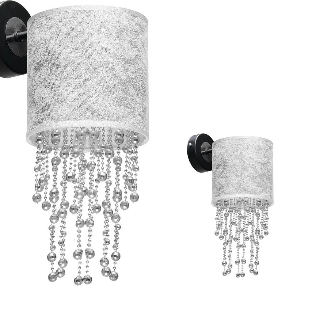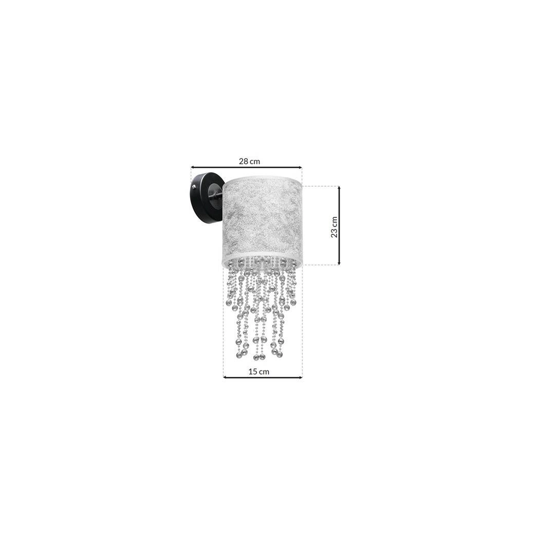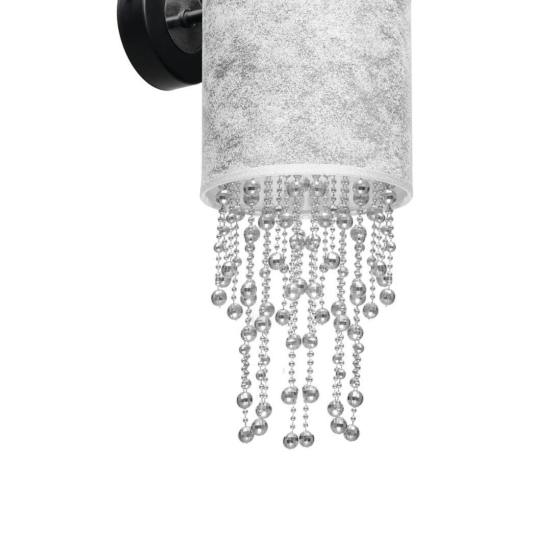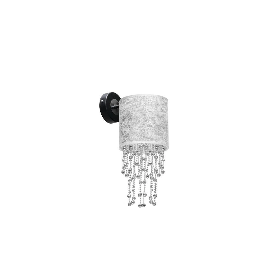ALMERIA MLP6433 to nowoczesna lampa ścienna z jednym źródłem światła. Kinkiet posiada klosz w kształcie walca wykonany z tkaniny w kolorze srebrnym na zewnątrz, od środka w kolorze chromu. Elementem wyróżniającym lampy są zwisające z wnętrza klosza sznury srebrnych korali różnej długości z tworzywa sztucznego. Podstawa kinkietu jest wykonana z wysokiej jakości metalu w kolorze czarnym z chromową wstawką. Lampa będzie doskonałym wyborem do wnętrz urządzonych w stylu nowoczesnym oraz glamour. Idealnie wkomponuje się do: salonu, sypialni, pokoju młodzieżowego, jadalni, lokalu, korytarza. Może stanowić uzupełnienie lamp wiszących tej serii jaki być oddzielnym elementem wystroju wnętrza. Wysokość lampy to: 28 cm, szerokość 15 cm, głębokość 28 cm. Klosz ma wysokość 23 cm. Źródłem światła jest żarówka typu E27 o mocy max 60W w ilości 1 szt.