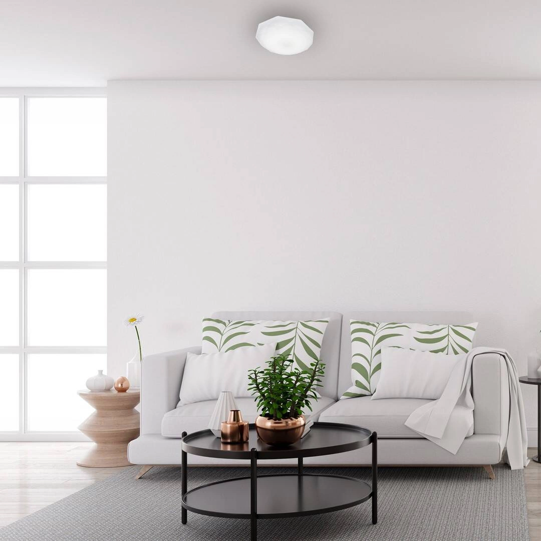 HEX EK76188 to nowoczesna lampa sufitowa. Wykonana została metalu i tworzywa sztucznego w kolorze białym. Lampa posiada stylowy klosz o oryginalnym kształcie, który po zapaleniu sprawia, że rozbłyskujące światło tworzy efekt gwiezdnego nieba. Będzie idealnym wyborem do: salonu, sypialni, pokoju młodzieżowego. Lampa ma wysokość: 8 cm i średnicę 29 cm. W lampie zastosowano wymienne źródło światła LED o mocy 12W, neutralnej barwie 4000K i jasności 960lm.