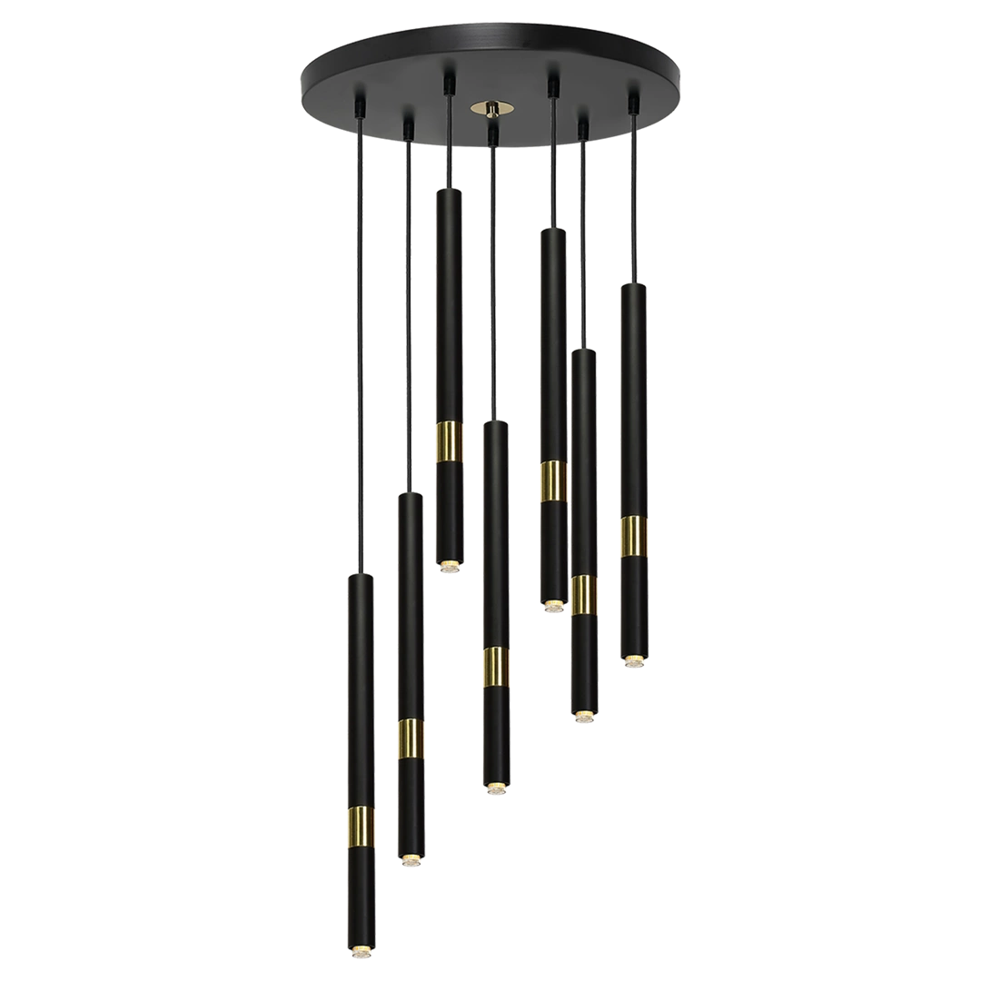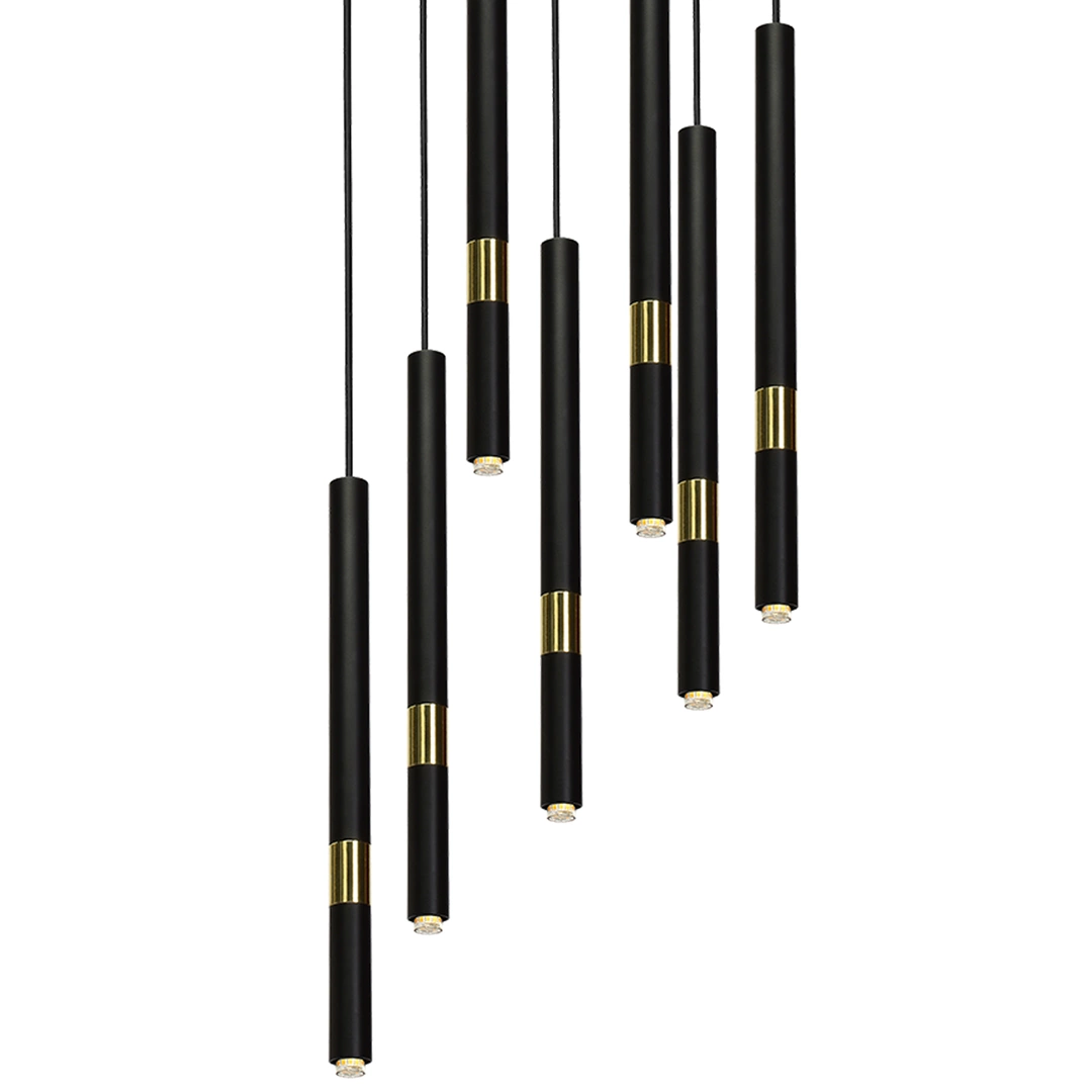 MONZA MLP6385 to stylowa lampa wisząca z siedmioma źródłami światła. Wykonana została z wysokiej jakości metalu w kolorze czarnym ze złotymi wstawkami. Elementami wyróżniającymi lampy są smukłe walcowate klosze przypominające sople. Oprawa będzie idealnym wyborem do nowoczesnych wnętrz. Doskonale będzie się prezentować w każdym pomieszczeniu. Dużą zaletą jest możliwość regulacji wysokości. Wysokość maksymalna lampy to: 90 cm, szerokość 40 cm, głębokość 40 cm. Klosz ma wysokość 38 cm. Źródłem światła jest żarówka typu G9 o mocy max 8W w ilości 7 szt.