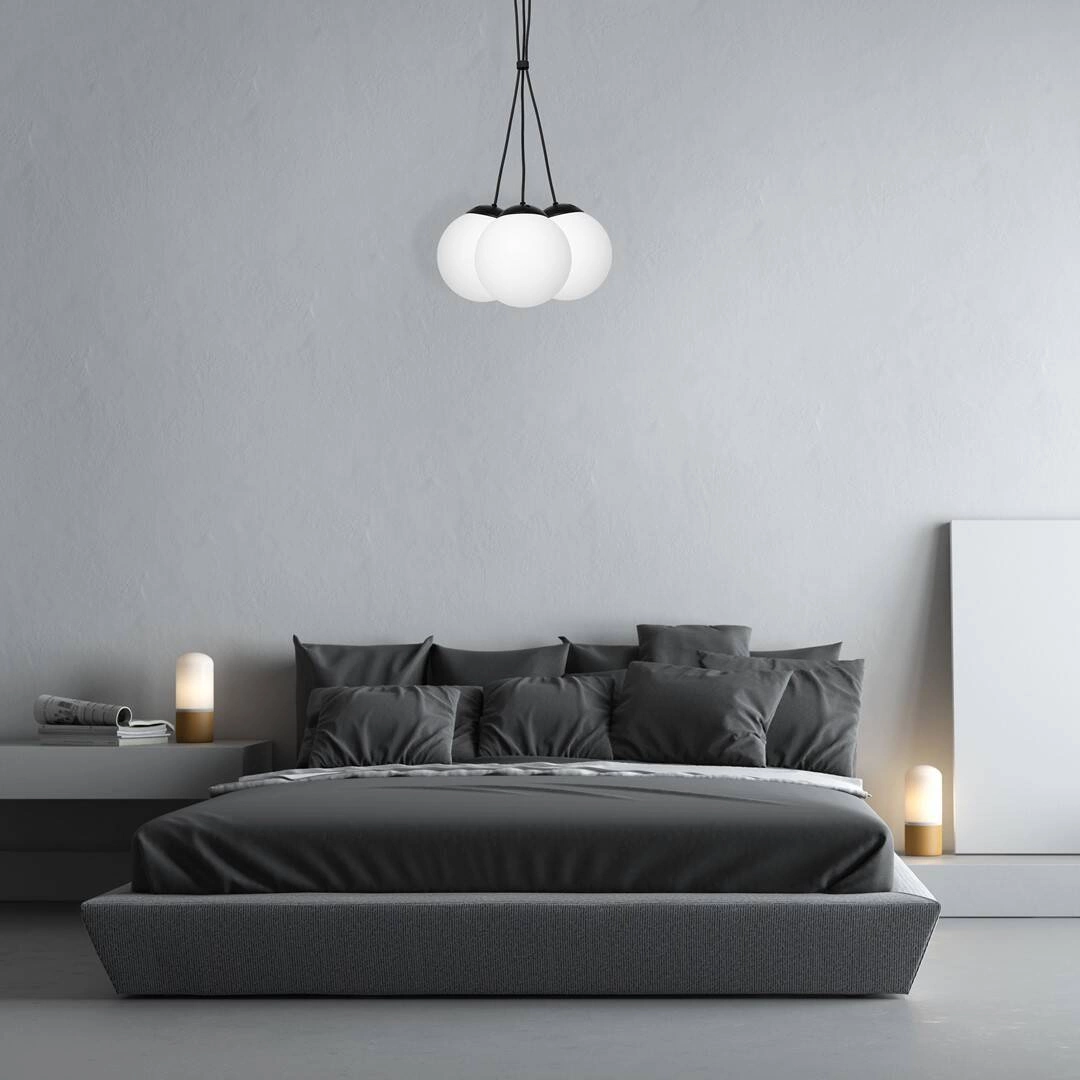 LIMA MLP6523 to nowoczesna lampa wisząca z trzema źródłami światła. Korpus lampy wykonany jest z wysokiej jakości metalu w kolorze czarnym. Lampa posada trzy szklane białe klosze w kształcie kul. Połączenie koloru białego z czarnym sprawia, że jest ona bardzo elegancka i efektowna. Lampa będzie idealnym wyborem do nowoczesnych wnętrz. Doskonale wkomponuje się do: salonu, jadalni, sypialni, pokoju młodzieżowego, gabinetu. Dużym atutem jest możliwość regulacji wysokości. Wysokość maksymalna to: 100 cm, szerokość 40 cm, głębokość 40 cm. Klosze mają wysokość 20 cm. Źródłem światła jest żarówka typu E14 o mocy max 40W w ilości 3 szt.