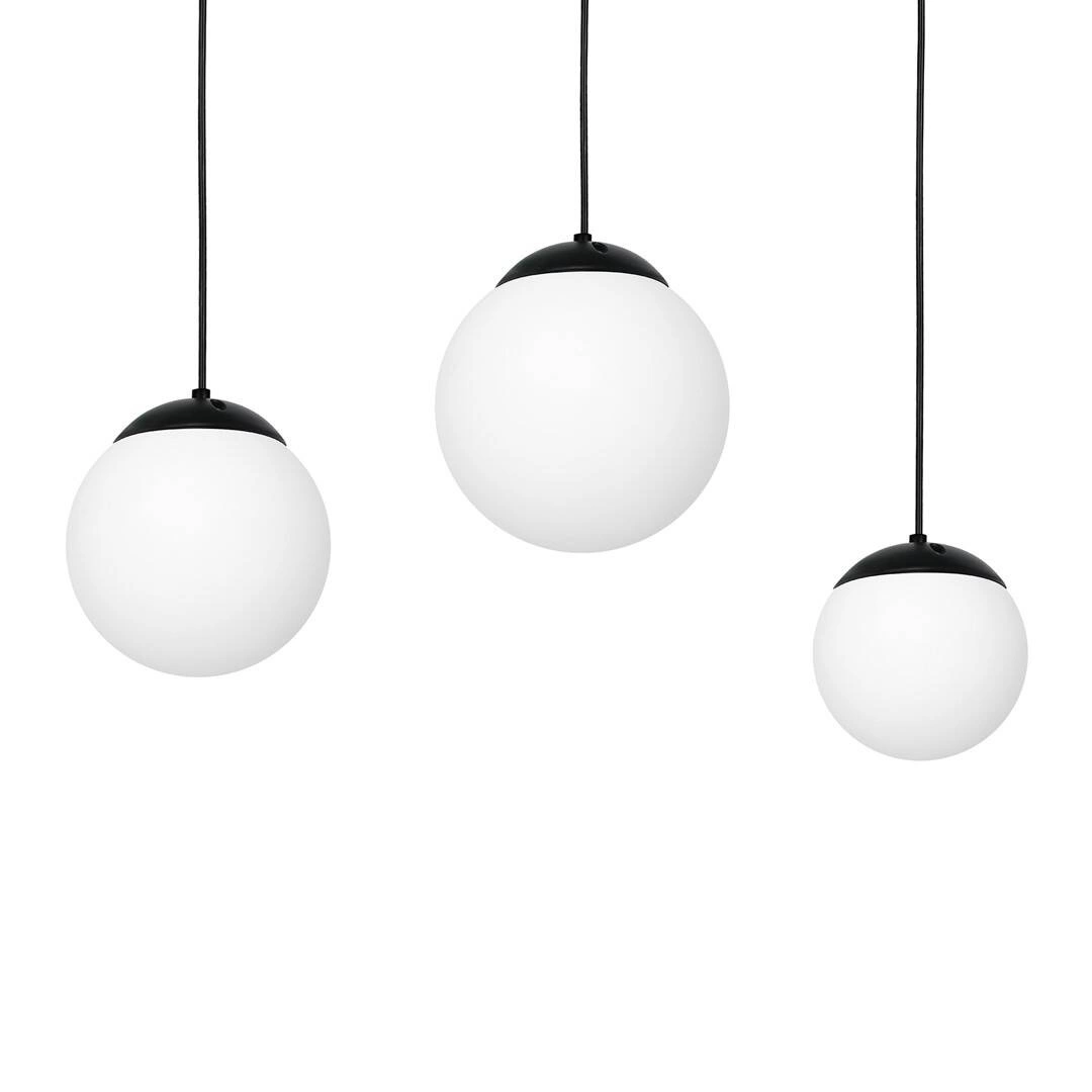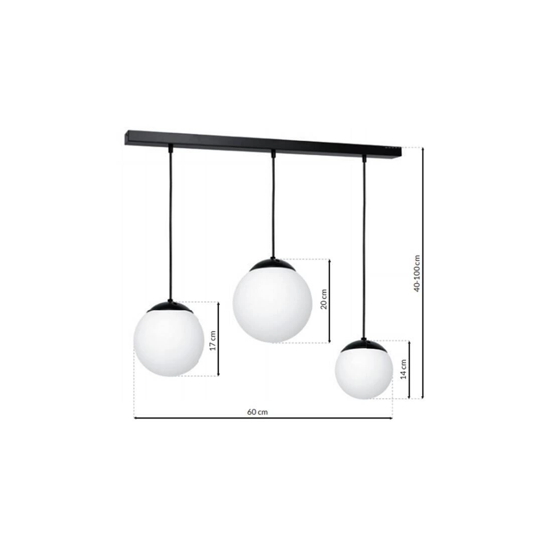 LIMA MLP6524 to nowoczesna lampa wisząca z trzema źródłami światła. Korpus lampy wykonany jest z wysokiej jakości metalu w kolorze czarnym. Lampa posada trzy szklane białe klosze w kształcie kul. Połączenie koloru białego z czarnym sprawia, że jest ona bardzo elegancka i efektowna. Lampa będzie idealnym wyborem do nowoczesnych wnętrz. Doskonale wkomponuje się do: salonu, jadalni, sypialni, pokoju młodzieżowego, gabinetu. Dużym atutem jest możliwość regulacji wysokości. Wysokość maksymalna to: 100 cm, szerokość 60 cm, głębokość 20 cm. Klosze mają wysokość: 14 cm, 17 cm, 20 cm. Źródłem światła jest żarówka typu E14 o mocy max 40W w ilości 3 szt.