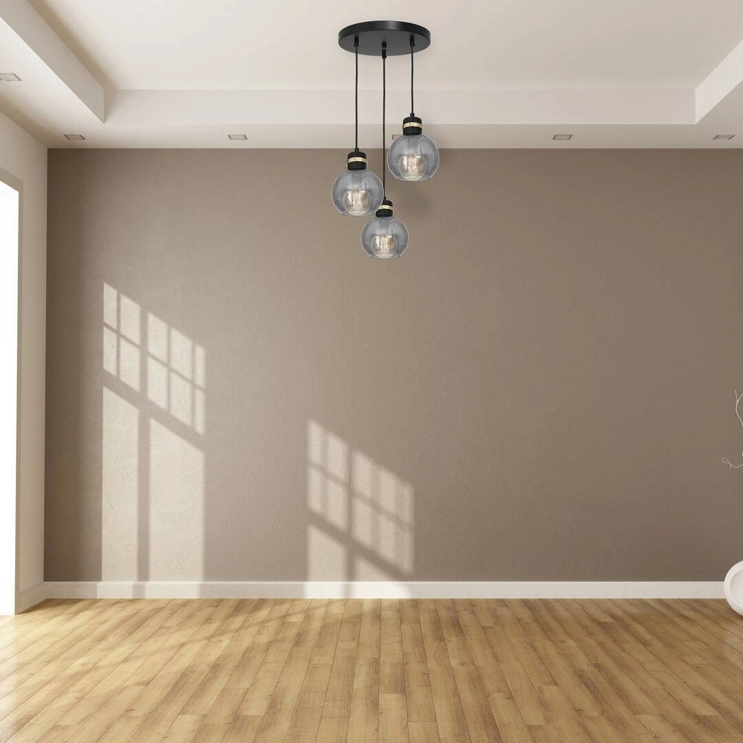 OMEGA MLP6533 to nowoczesna lampa wisząca z trzema źródłami światła. Wykonana jest z wysokiej jakości metalu i szkła. Lampa posiada trzy piękne klosze z dymionego szkła w kształcie kul. Wyróżniającym się elementem ozdobnym są złote wstawki nad kloszami, co w połączeniu z czarnym kolorem nadaje klasy i elegancji. Lampa będzie idealnym wyborem do nowoczesnych, klasycznych oraz minimalistycznych wnętrz. Doskonale wkomponuje się do: salonu, jadalni, sypialni, pokoju młodzieżowego, gabinetu. Dużym atutem jest możliwość regulacji wysokości. Wysokość maksymalna to: 100 cm, szerokość 30 cm, głębokość 30 cm. Klosz ma średnicę 20 cm. Źródłem światła jest żarówka typu E27 o mocy max 60W w ilości 3 szt.