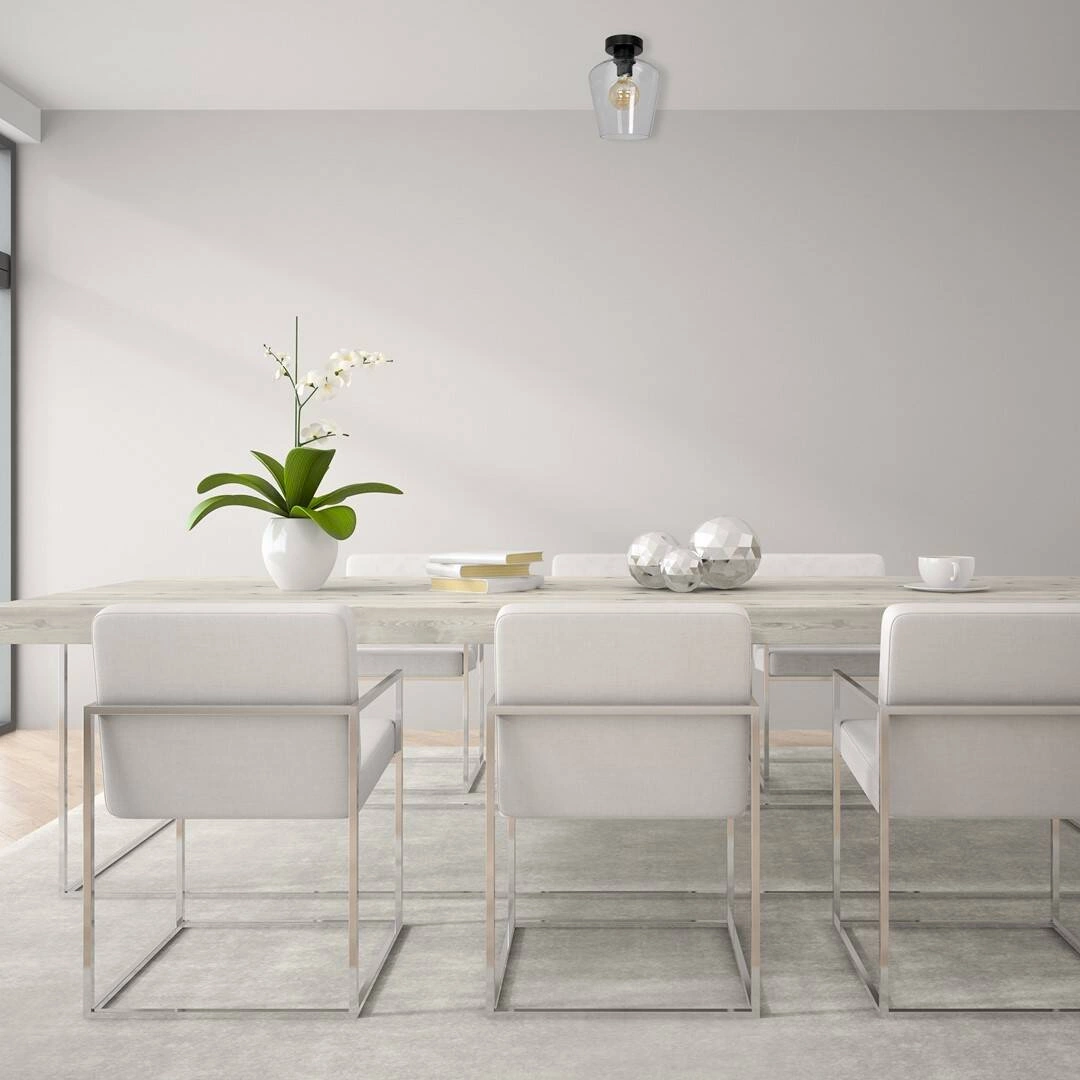 SANTIAGO CLEAR MLP6602 to nowoczesna lampa sufitowa z jednym źródłem światła. Wykonana jest z wysokiej jakości metalu w kolorze czarnym. Lampa posiada smukły, szklany klosz w kształcie odwróconego kielicha. Klosz jest transparentny. Bardzo elegancki wygląd sprawia, że lampa będzie idealnym wyborem do nowoczesnych oraz loftowych wnętrz. Idealnie wkomponuje się do: salonu, jadalni, sypialni, pokoju młodzieżowego, gabinetu. Wysokość lampy to: 24 cm, szerokość 18 cm, głębokość 18 cm. Wysokość klosza to 20 cm. Źródłem światła jest żarówka typu E27 o mocy max 60W w ilości 1 szt.