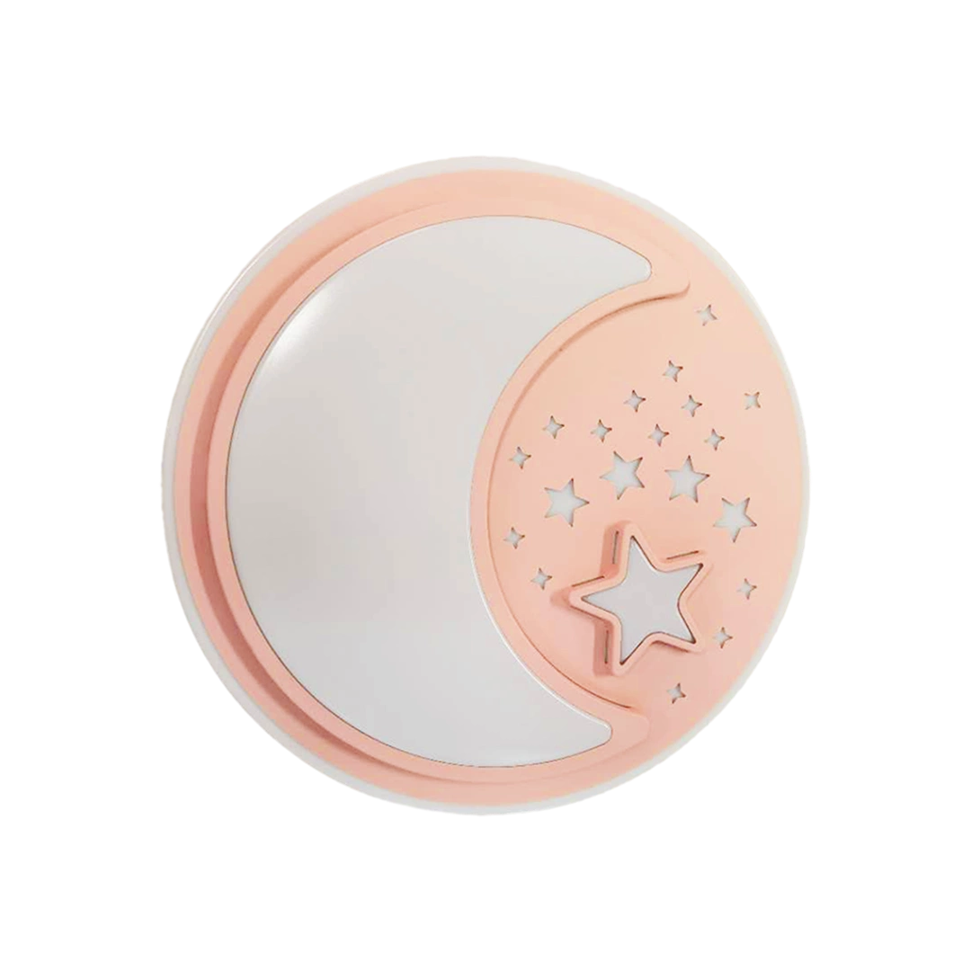 NOTTE PINK MLP6184 to nowoczesny plafon, który idealnie wkomponuje się do dziecięcego pokoju. Wykonany został z wysokiej jakości metalu i tworzywa sztucznego w kolorze różowym. Elementem wyróżniającym lampy jest okrągły klosz ozdobiony motywem gwiazd i księżyca. Plafon wyposażony jest w pilot zdalnego sterownia, który umożliwia miedzy innymi regulację natężenia oraz barwy światła. Wysokość lampy to: 8 cm, średnica 48 cm. W lampie zastosowano źródło światła LED o mocy 40W, zmiennej barwie światła 3000K-6000K i jasności 2800lm.