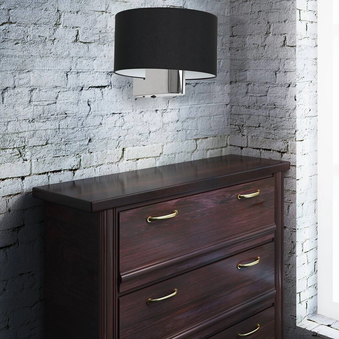 CASINO ML6377 to nowoczesna lampa ścienna z jednym źródłem światła. Korpus lampy wykonano z wysokiej jakości metalu w kolorze chromu. Abażur ma kształt walca, jest wykonany z tkaniny w kolorze czarnym na zewnątrz, od środka jest biały. Kinkiet będzie idealnym wyborem do klasycznych oraz nowoczesnych wnętrz. Doskonale wpasuje się do: salonu, sypialni, jadalni, pokoju młodzieżowego, gabinetu, lokalu, korytarza. Może stanowić uzupełnienie lamp sufitowych tej serii jak i być oddzielnym elementem wystroju wnętrza. Wysokość kinkietu to: 19 cm, szerokość 26 cm, głębokość 19 cm. Klosz ma wysokość 15 cm. Źródłem światła jest żarówka typu E27 o mocy max 60W w ilości 1 szt.