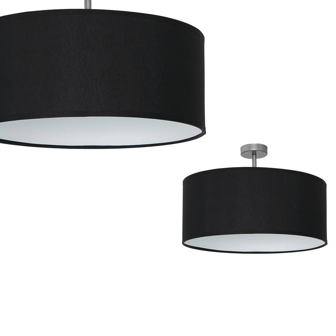 CASINO ML6379 to nowoczesna lampa sufitowa z jednym źródłem światła. Korpus lampy wykonano z wysokiej jakości metalu w kolorze chromu. Abażur ma kształt walca, jest wykonany z tkaniny w kolorze czarnym na zewnątrz, od środka jest biały. Lampa będzie idealnym wyborem do klasycznych oraz nowoczesnych wnętrz. Doskonale wpasuje się do: salonu, sypialni, jadalni, pokoju młodzieżowego, gabinetu, lokalu. Wysokość lampy to: 35 cm, szerokość 50 cm, głębokość 50 cm. Klosz ma wysokość 25 cm. Źródłem światła jest żarówka typu E27 o mocy max 60W w ilości 1 szt.