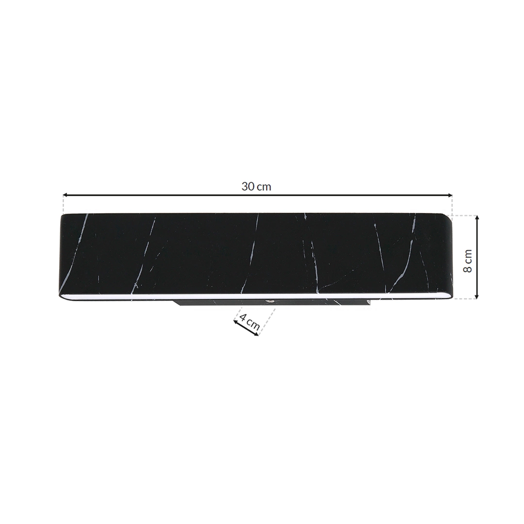 PIERCE BLACK ML6471 to lampa ścienna w nowoczesnym stylu. Wykonana została z wysokiej jakości metalu i tworzywa sztucznego w kolorze czarnym. Klosz lampy stanowi podłużna belka z tworzywa sztucznego imitującego marmur. Lampa doskonale będzie się prezentować w każdym pomieszczeniu. Może stanowić uzupełnienie lamp wiszących tej serii jak i być oddzielnym elementem wystroju wnętrza. Wysokość kinkietu to: 8 cm, szerokość 30 cm, głębokość 4 cm. Źródłem światła jest wymienny moduł 12W LED 720lm 4000K. Źródło światła dołączone w zestawie.