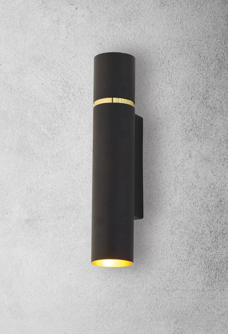LYNX MZ5000 to stylowa lampa ścienna z dwoma źródłami światła. Wykonana została z mosiądzu w kolorze czarno-złotym. Oprawa będzie idealnym wyborem do wnętrz urządzonych w stylu minimalistycznym oraz glamour. Doskonale będzie się prezentować w: salonie, jadalni, sypialni, pokoju młodzieżowym, gabinecie, biurze, lokalu, przedpokoju, korytarzu. Wysokość lampy to: 30 cm, szerokość 6 cm, głębokość 10,5 cm. Źródłem światła jest żarówka typu E14 o mocy max 40W w ilości 2 szt.