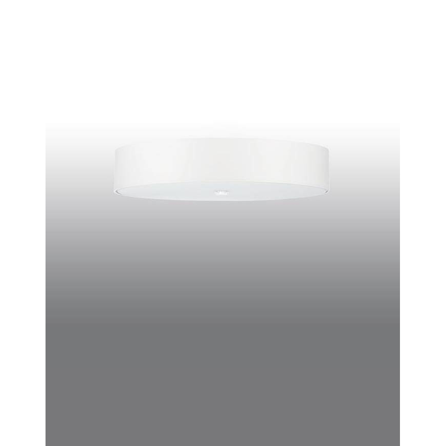 SKALA SL.0811 to lampa sufitowa z sześcioma źródłami światła. Korpus lampy wykonano z wysokiej jakości stali. Abażur jest z białej tkaniny zamknięty od spodu mleczną taflą szkła. Oprawa będzie idealnym wyborem do wnętrz urządzonych w stylu: klasycznym, skandynawskim, industrialnym oraz loftowym. Doskonale będzie się prezentować w: salonie, jadalni, sypialni, pokoju młodzieżowym, gabinecie, biurze, lokalu, kuchni. Wysokość lampy to: 20 cm, średnica 70 cm. Źródłem światła jest żarówka typu E27 o mocy max 60W w ilości 6 szt.