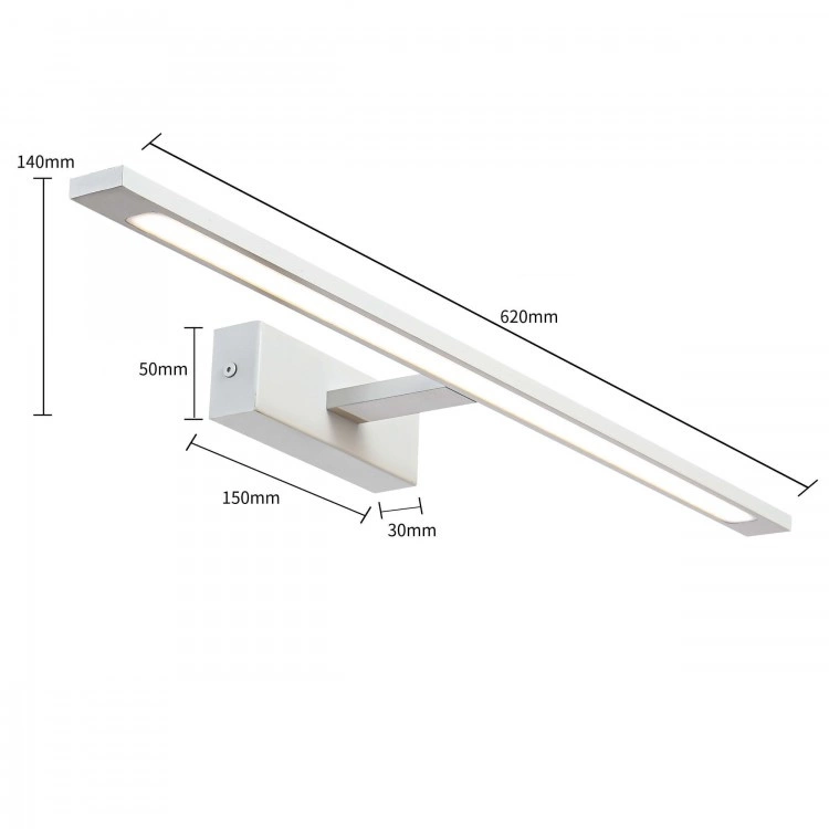 Oprawa w formie długiej białej listwy na wysięgniku jest subtelna i prosta - pasować będzie do każdej łazienki, niezależnie od stylu w jakim jest urządzona.