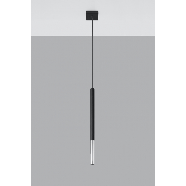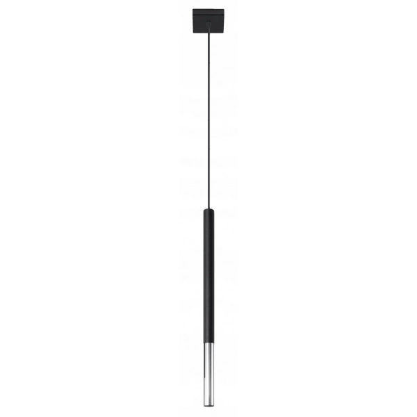 MOZAICA 1 SL.0885 to nowoczesna lampa wisząca z jednym źródłem światła. Wykonana została z wysokiej jakości stali w kolorze czarno-chromowym. Lampa posiada klosz kształcie tuby zwisający z kwadratowej podsufitki. Oprawa będzie idealnym wyborem do wnętrz urządzonych w nowoczesnym stylu. Doskonale będzie się prezentować w: salonie, jadalni, sypialni, pokoju młodzieżowym, gabinecie, biurze, lokalu. Dużą zaletą jest możliwość regulacji wysokości. Wysokość maksymalna lampy to: 100 cm, szerokość 8 cm, głębokość 8 cm. Źródłem światła jest żarówka typu G9 o mocy max 40W w ilości 1 szt.