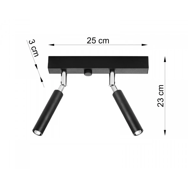 EYETECH 2 SL.0898 to nowoczesna lampa sufitowa z dwoma źródłami światła. Wykonana została z wysokiej jakości metalu w kolorze czarnym. Lampa składa się z podłużnej podsufitki z krótkimi ramionami, na których osadzono dwa reflektorki w kształcie walca. Reflektorki mają możliwość regulacji punktu padania światła. Lampa będzie idealnym wyborem do nowoczesnych, industrialnych oraz loftowych wnętrz. Doskonale będzie się prezentować w: salonie, jadalni, sypialni, pokoju młodzieżowym, gabinecie, biurze, przedpokoju, korytarzu, kuchni, łazience. Wysokość lampy to: 23 cm, szerokość 25 cm, głębokość 3 cm. Źródłem światła jest żarówka typu G9 o mocy max 40W w ilości 2 szt.