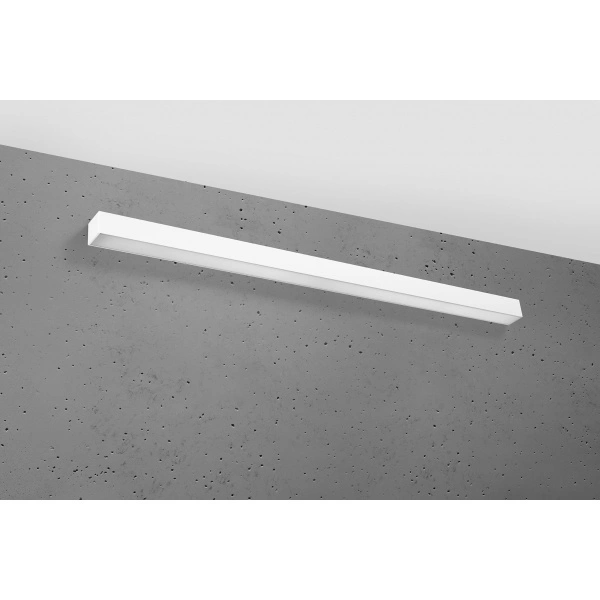 PINNE TH.074 to nowoczesna lampa ścienna z jednym źródłem światła. Kinkiet ma kształt prostokątnej belki, jest wykonany z metalu w kolorze białym. Źródło światła znajduje się pod mleczną akrylową osłoną. Bardzo elegancki wygląd sprawia, że lampa będzie idealnym wyborem do wnętrz nowoczesnych, minimalistycznych oraz modernistycznych. Doskonale sprawdzi się w przestrzeniach mieszkalnych oraz komercyjnych. Wysokość kinkietu to: 5 cm, szerokość 115 cm, głębokość 5 cm. Źródłem światła jest wbudowany moduł LED o mocy 38W, neutralnej barwie światła 4000K i jasności 5700 lm.