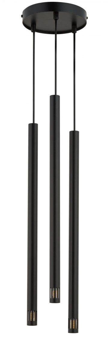 Nowoczesna lampa wisząca SOPEL LASER 3 to lampa z 3 źródłami światła. Wykonana jest ze stali lakierowanej w kolorze czarnym. Ponadczasowa czerń lampy sprawia, że aranżacje stają się bardziej wyraziste a równocześnie uniwersalne. Wisząca lampa doskonale komponuje się z każdym wnętrzem: modernistycznym, klasycznym, młodzieżowym, biurowym. Doskonale prezentuje się w jadalni, salonie, kuchni, pokoju młodzieżowym, sypialni, biurze. Regulowana wysokość sopla pozwala dostosować lampę według indywidualnych wymagań. Maksymalna wysokość lampy 100 cm, szerokość 16 cm. Wysokość sopla 50 cm, a jego średnica wynosi 2,5 cm.