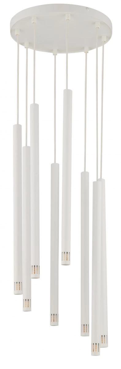 Nowoczesna lampa wisząca SOPEL LASER 8 to lampa z 8 źródłami światła. Wykonana jest ze stali lakierowanej w kolorze białym. Uniwersalność i neutralność białej lampy daje możliwość aranżacji wielu pomieszczeń. Biel doskonale sprawdza się w każdym wnętrzu: minimalistycznym, klasycznym, skandynawskim, nowoczesnym. Doskonale prezentuje się w jadalni, salonie, kuchni, pokoju młodzieżowym, sypialni, biurze. Regulowana wysokość sopla pozwala dostosować lampę według indywidualnych wymagań. Maksymalna wysokość lampy 100 cm, szerokość 30 cm. Wysokość sopla 50 cm, a jego średnica wynosi 2,5 cm.