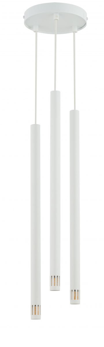 Nowoczesna lampa wisząca SOPEL LASER 3 to lampa z 3 źródłami światła. Wykonana jest ze stali lakierowanej w kolorze białym. Uniwersalność i neutralność białej lampy daje możliwość aranżacji wielu pomieszczeń. Biel doskonale sprawdza się w każdym wnętrzu: minimalistycznym, klasycznym, skandynawskim, nowoczesnym. Doskonale prezentuje się w jadalni, salonie, kuchni, pokoju młodzieżowym, sypialni, biurze. Regulowana wysokość sopla pozwala dostosować lampę według indywidualnych wymagań. Maksymalna wysokość lampy 100 cm, szerokość 16 cm. Wysokość sopla 50 cm, a jego średnica wynosi 2,5 cm.