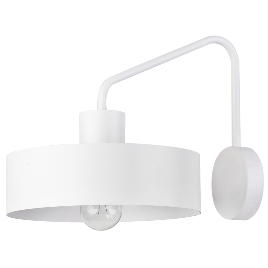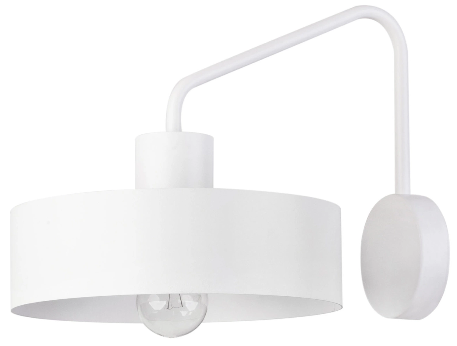 JUMBO KINKIET to nowoczesna lampa ścienna z jednym źródłem światła. Stelaż lampy wykonany jest ze stali lakierowanej w kolorze białym. Kinkiet posiada stalowy biały klosz osadzony na wygiętym ramieniu przytwierdzonym do podstawy. Biel świetnie sprawdza się w każdym wnętrzu, aranżacje uzupełnione białym oświetleniem stają się bardziej eleganckie i subtelne. Lampa jest idealnym wyborem do wnętrz nowoczesnych, klasycznych oraz typu loft. Doskonale wkomponuje się do: pokoju młodzieżowego, gabinetu, biura, lokalu, jadalni, korytarza, salonu, sypialni. Może stanowić uzupełnienie do lamp wiszących i podłogowych tej serii jak i być oddzielnym elementem wystroju wnętrza. Wysokość lampy to 28 cm, szerokość 34,5 cm, głębokość 25 cm. Klosz ma wysokość 8 cm i średnicę 25 cm. Źródłem światła jest żarówka typu E27 o mocy max. 60W w ilości 1 szt.