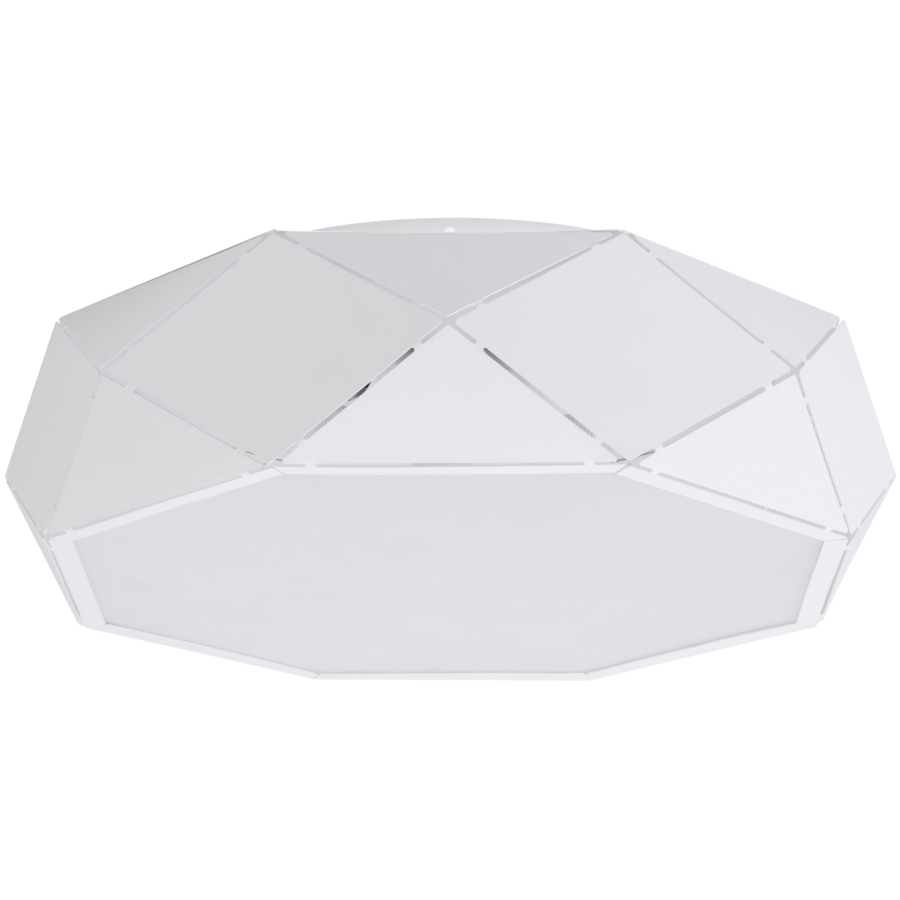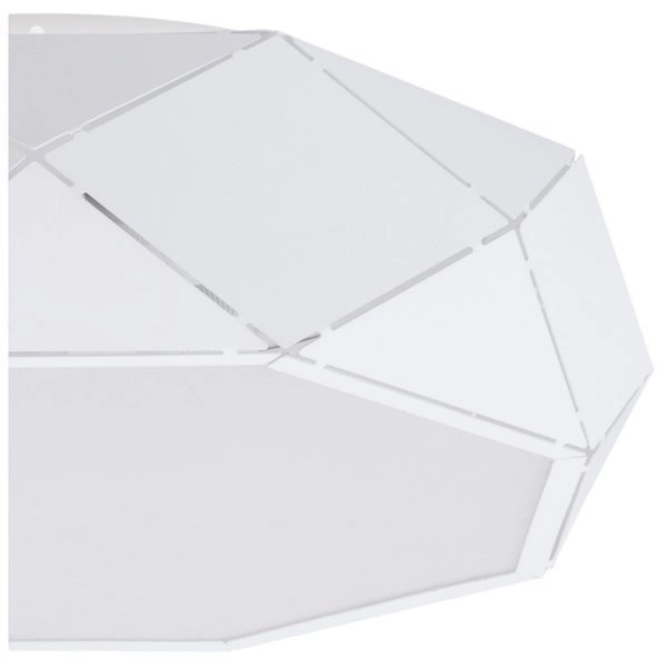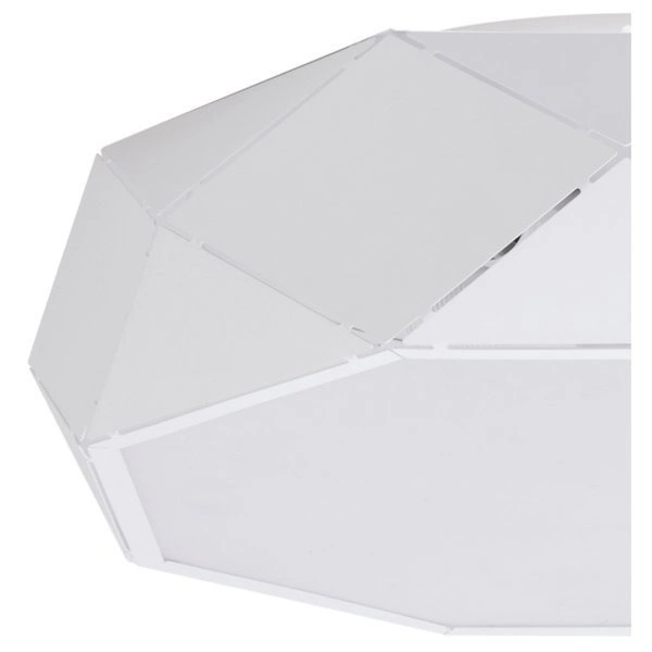 JOTA L PL to nowoczesna lampa sufitowa z pięcioma źródłami światła. Korpus lampy wykonany jest ze stali lakierowanej na kolor biały i tworzywa PMMA. Lampa posiada biały stalowy klosz o bardzo oryginalnym kształcie. Żarówki w tej lampie są umieszczone pod białą osłoną z tworzywa. Bardzo elegancki wygląd sprawia, że lampa będzie ozdobą każdego nowoczesnego pomieszczenia. Idealnie wkomponuje się do: kuchni, salonu, sypialni, pokoju młodzieżowego, biura gabinetu. Wysokość lampy to: 17 cm, szerokość 52 cm, głębokość 52 cm. Klosz ma wysokość 15 cm i średnicę 52 cm. Źródłem światła jest żarówka typu E27 o mocy max 20W CFL w ilości 5 szt.