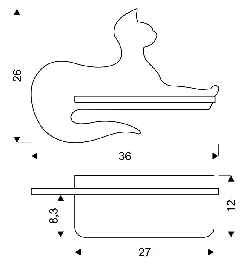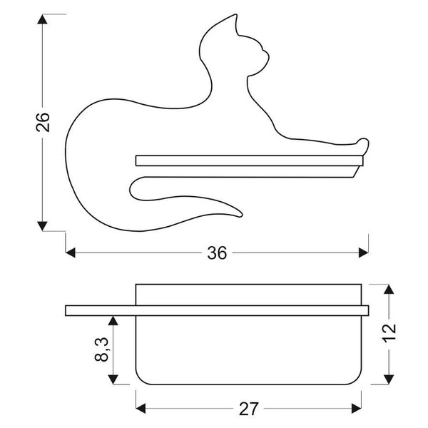 CAT 21-75642 to nowoczesna lampa ścienna w kształcie siedzącego kota z półeczką, przeznaczona do dziecięcego pokoju. Wykonana została z drewna, MDF-u i stali w kolorze czarnym. Wysokość lampki to: 26 cm, szerokość 36 cm, głębokość 12 cm. W lampie zastosowano źródło światła LED o mocy 5W, neutralnej barwie 4000K i jasności 250lm.
