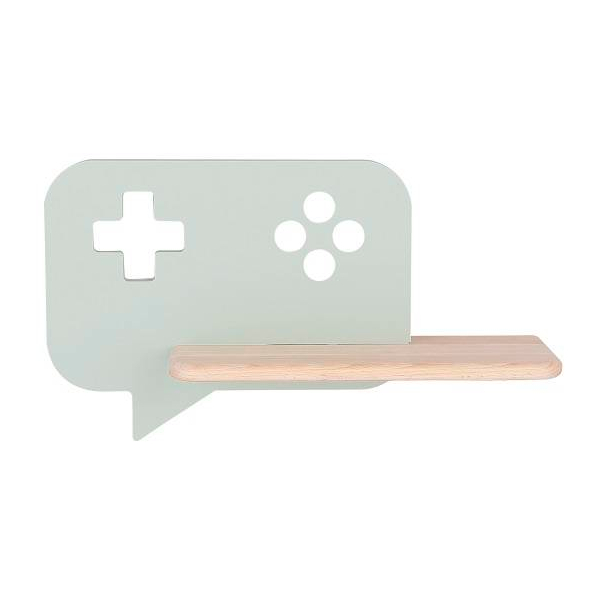 CONSOLE 21-75680 to nowoczesna lampa ścienna w kształcie pada od konsoli z półeczką, przeznaczona do dziecięcego pokoju. Wykonana została z drewna, MDF-u i stali w kolorze miętowym. Wysokość lampki to: 20 cm, szerokość 36 cm, głębokość 12 cm. W lampie zastosowano źródło światła LED o mocy 5W, neutralnej barwie 4000K i jasności 250lm.