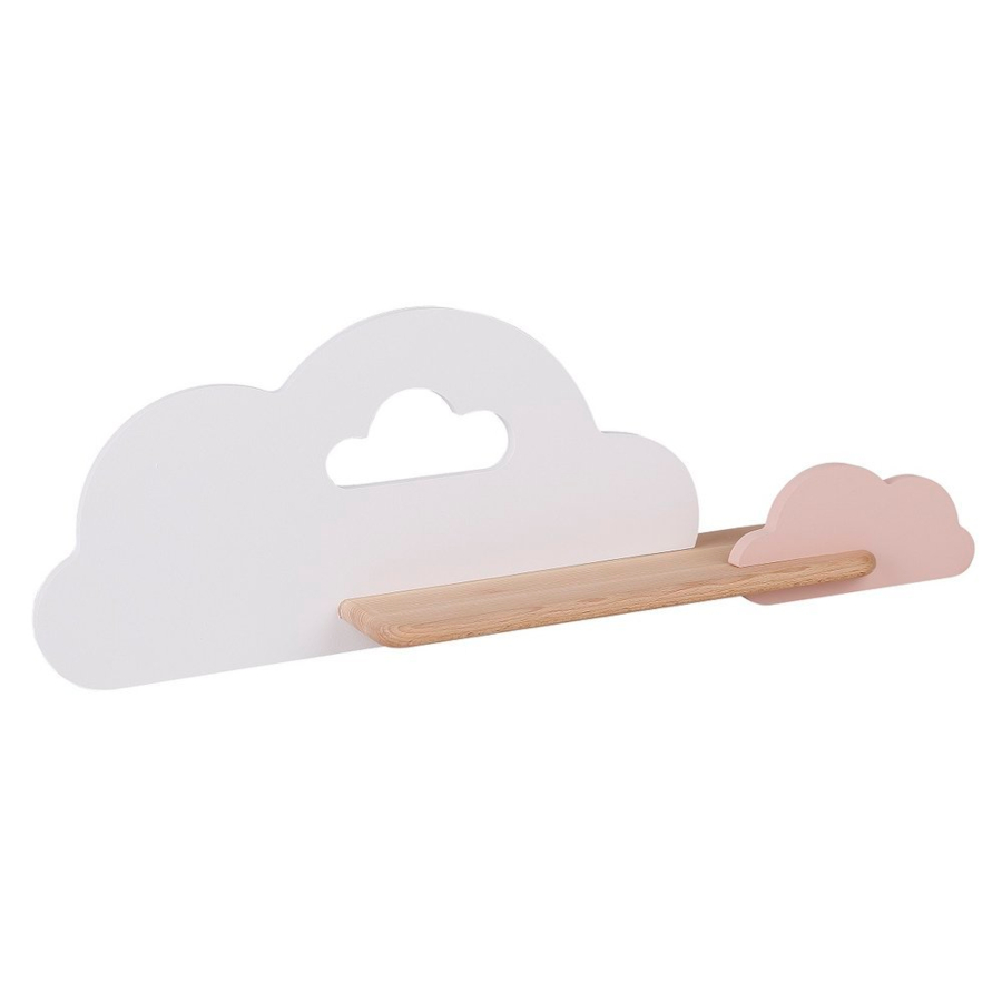CLOUD 21-76717 to nowoczesna lampa ścienna w kształcie chmurki ze zintegrowaną półeczką, przeznaczona do dziecięcego pokoju. Wykonana została z drewna, MDF-u i stali w kolorze biało-różowym. Wysokość lampki to: 18,5 cm, szerokość 53 cm, głębokość 12 cm. W lampie zastosowano źródło światła LED o mocy 5W, neutralnej barwie 4000K i jasności 250lm.