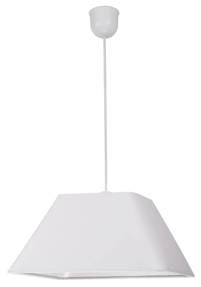 ROBIN 31-57518 to nowoczesna lampa wisząca z jednym źródłem światła. Lampa składa się z geometrycznego abażura w kolorze białym zwisającego z plastikowej podsufitki. Oprawa będzie idealnym wyborem do wnętrz urządzonych nowoczesnym stylu. Doskonale wkomponuje się do: salonu, jadalni, sypialni, pokoju młodzieżowego, gabinetu, lokalu, kuchni. Dużą zaletą jest możliwość regulacji wysokości. Wysokość maksymalna lamy to: 95 cm, szerokość 35 cm, głębokość 35 cm. Źródłem światła jest żarówka typu E27 o mocy max 60W w ilości 1 szt.