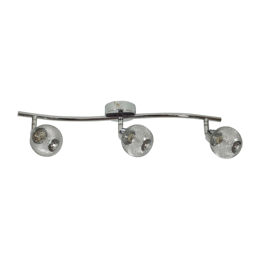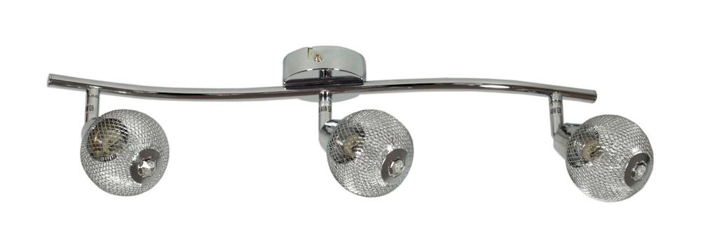 NOVEL 93-06974 to nowoczesna lampa sufitowa z trzema źródłami światła, która może służyć także jako kinkiet. Wykonana została z wysokiej jakości metalu w kolorze chromowym. Lampa posiada trzy kuliste siatkowe klosze zamknięte dużymi kryształami w chromowych ramkach. Klosze osadzone są na ruchomych przegubach, które dają możliwość regulacji kąta padania światła. Oprawa będzie idealnym wyborem do wnętrz urządzonych w nowoczesnym stylu. Doskonale będzie się prezentować w: salonie, jadalni, sypialni, pokoju młodzieżowym, gabinecie, biurze, lokalu, przedpokoju, korytarzu. Wysokość lampy to: 18 cm, szerokość 64 cm, głębokość 8 cm. Źródłem światła jest żarówka typu G9 o mocy max 40W w ilości 3 szt. (źródła światła w zestawie)